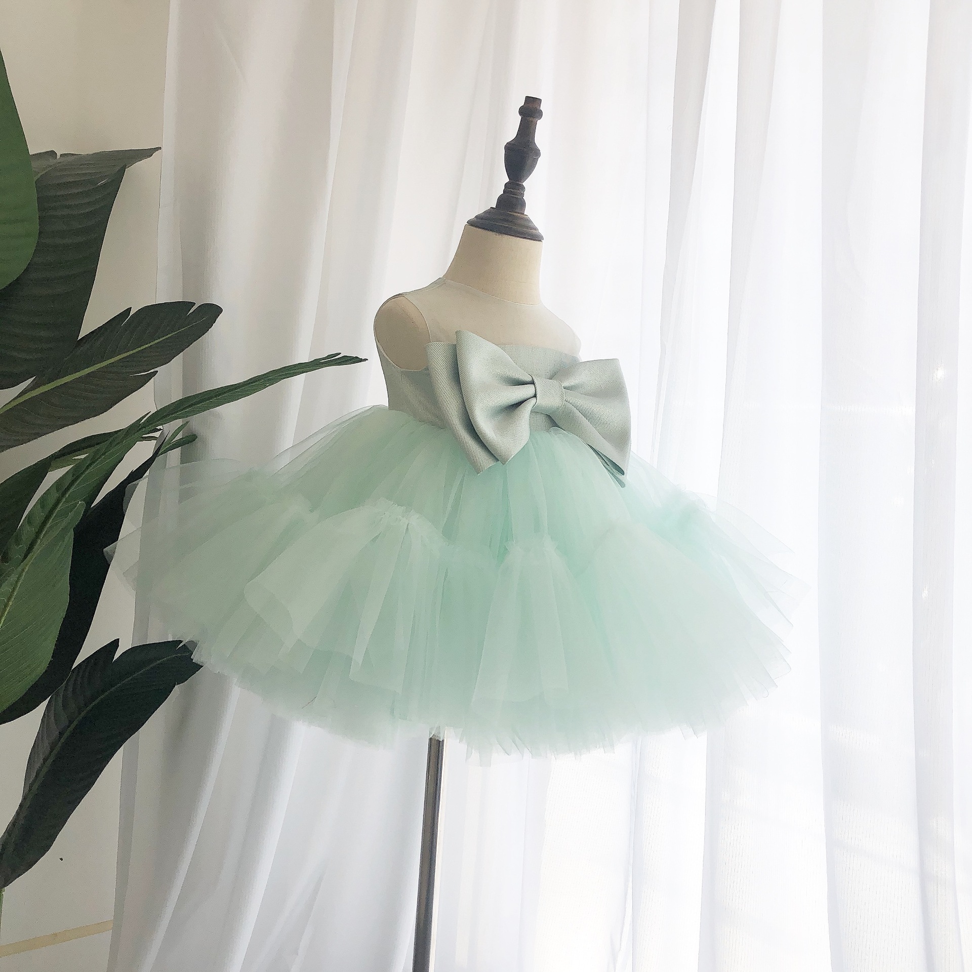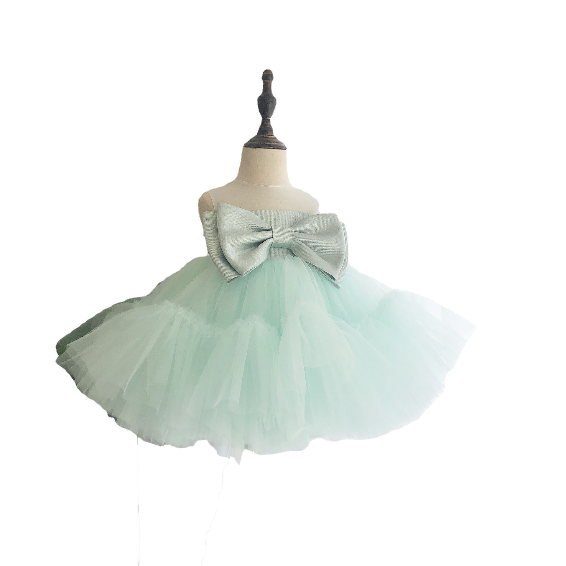 Girls'Dress Princess Dress Summer Light Green Big Bow Girl's Birthday Party Performance100-day Birthday Dress Dress