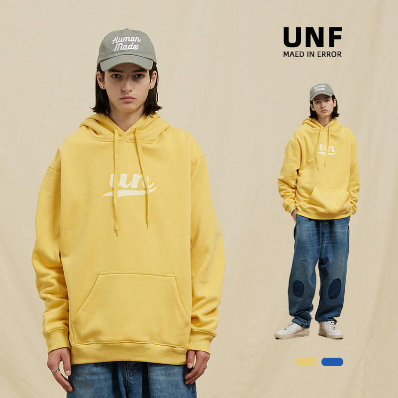 UNFUn Double-layer Letter Basic Style Printed Versatile Hooded Plus Velvet Thickened Warm Sweatshirt For Men And Women Autumn And Winter