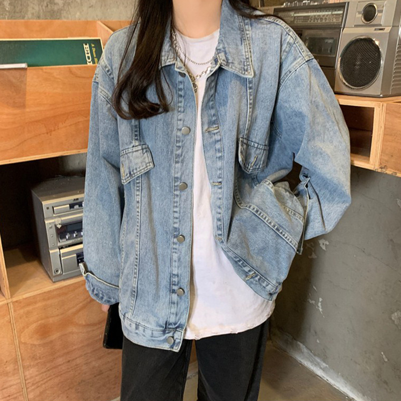 Harajuku Bf Style Loose Versatile Jacket Top Spring And Autumn Korean Style Retro Casual Denim Jacket For Women