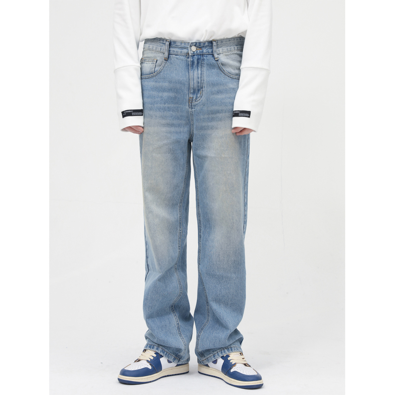 MTLCLOTHESMen's Clothing|Arrivals For All Seasons,Korean-style Loose,y,Whitened Design,Mid-waist Jeans For Men