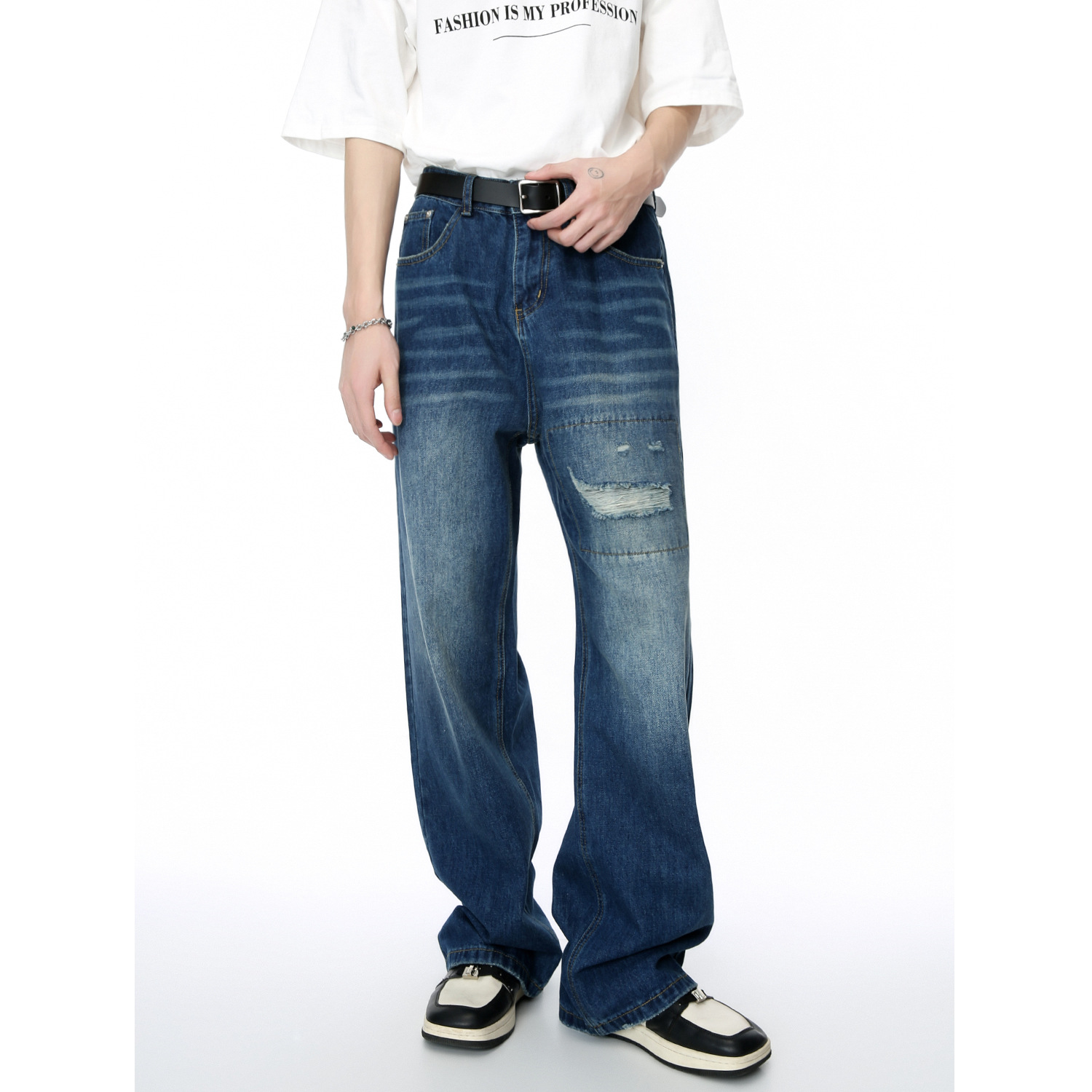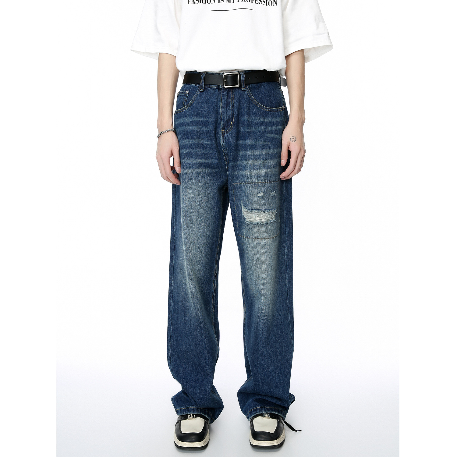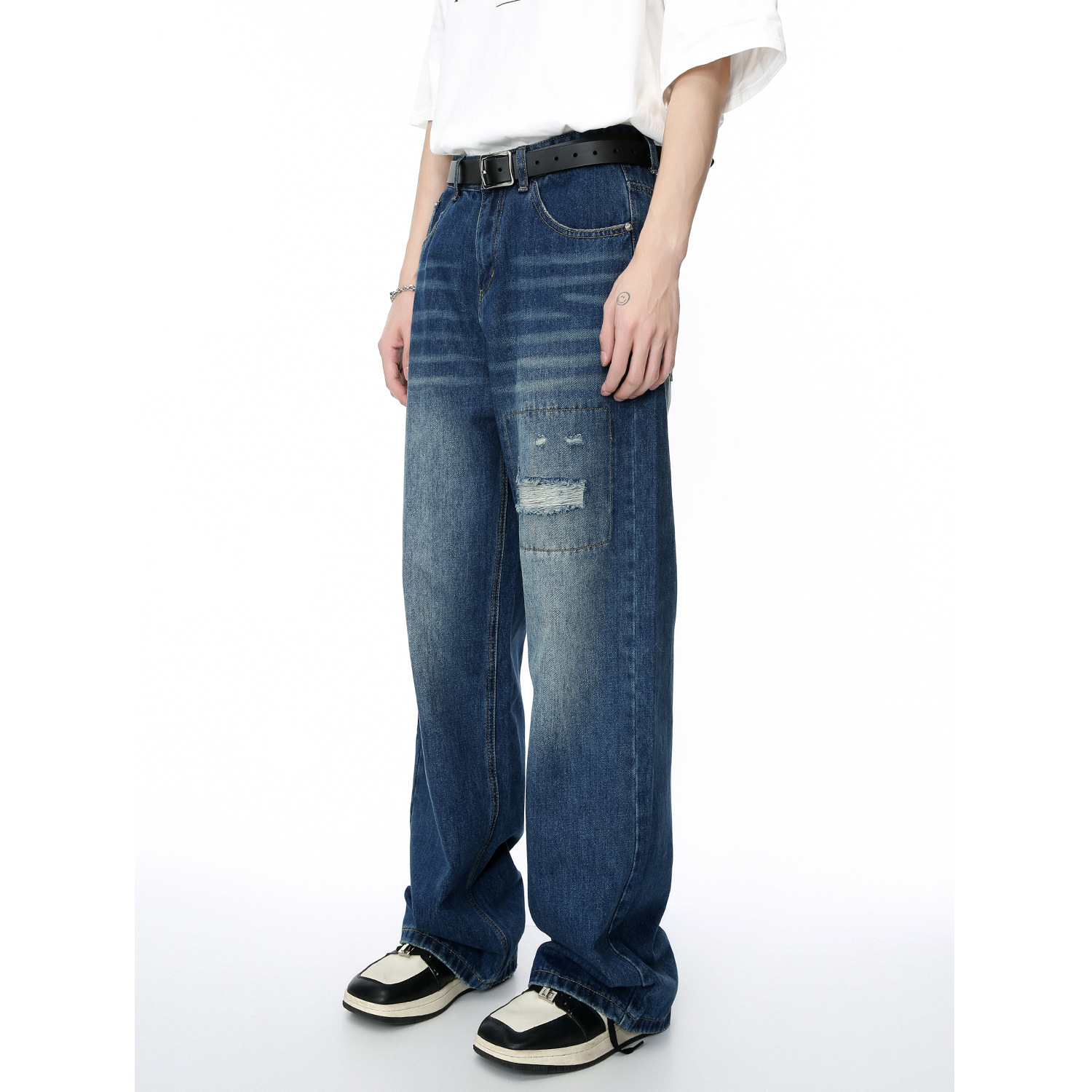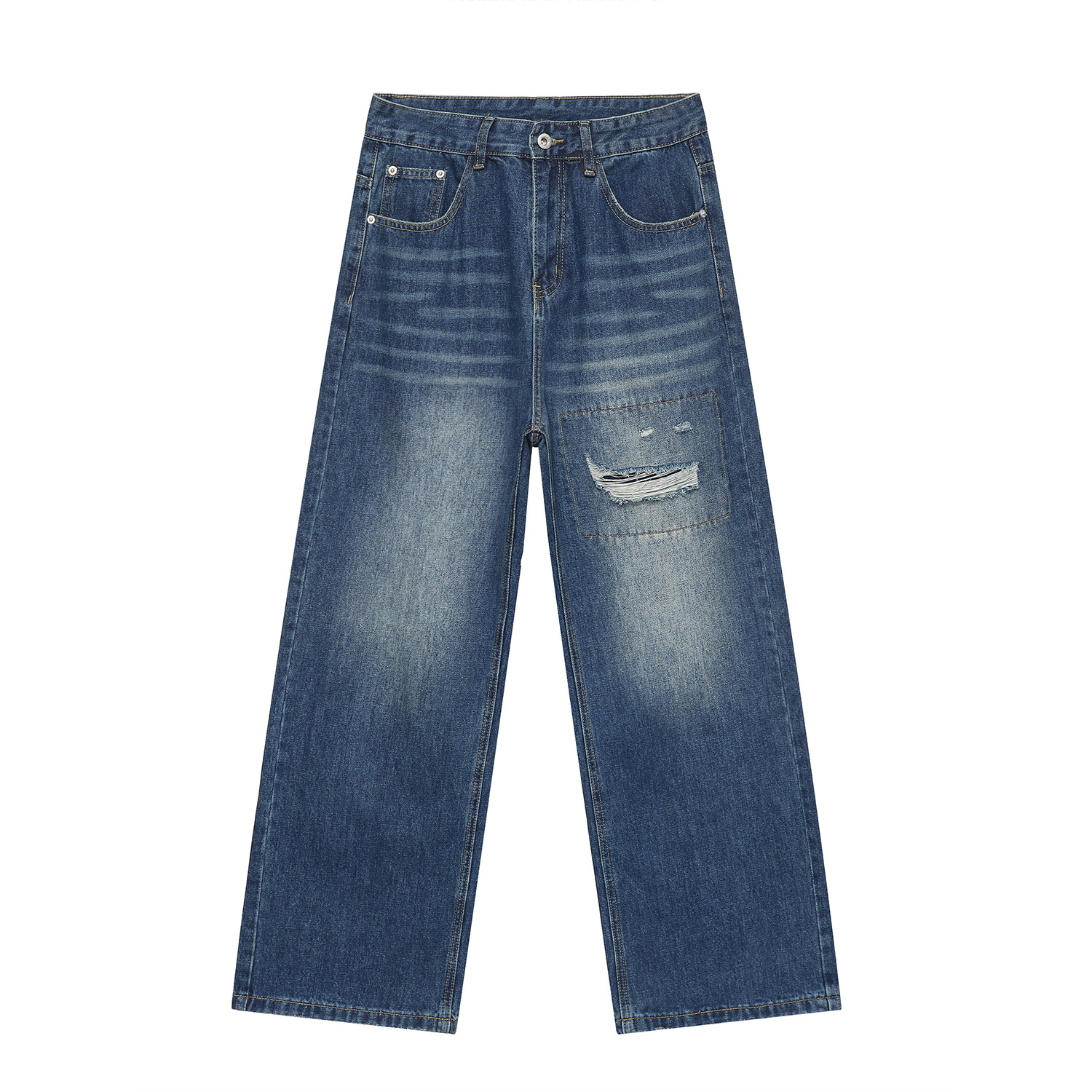 MTLCLOTHESMen's Clothing|Four Seasons Retro Patched Hole Design Loose Straight Jeans