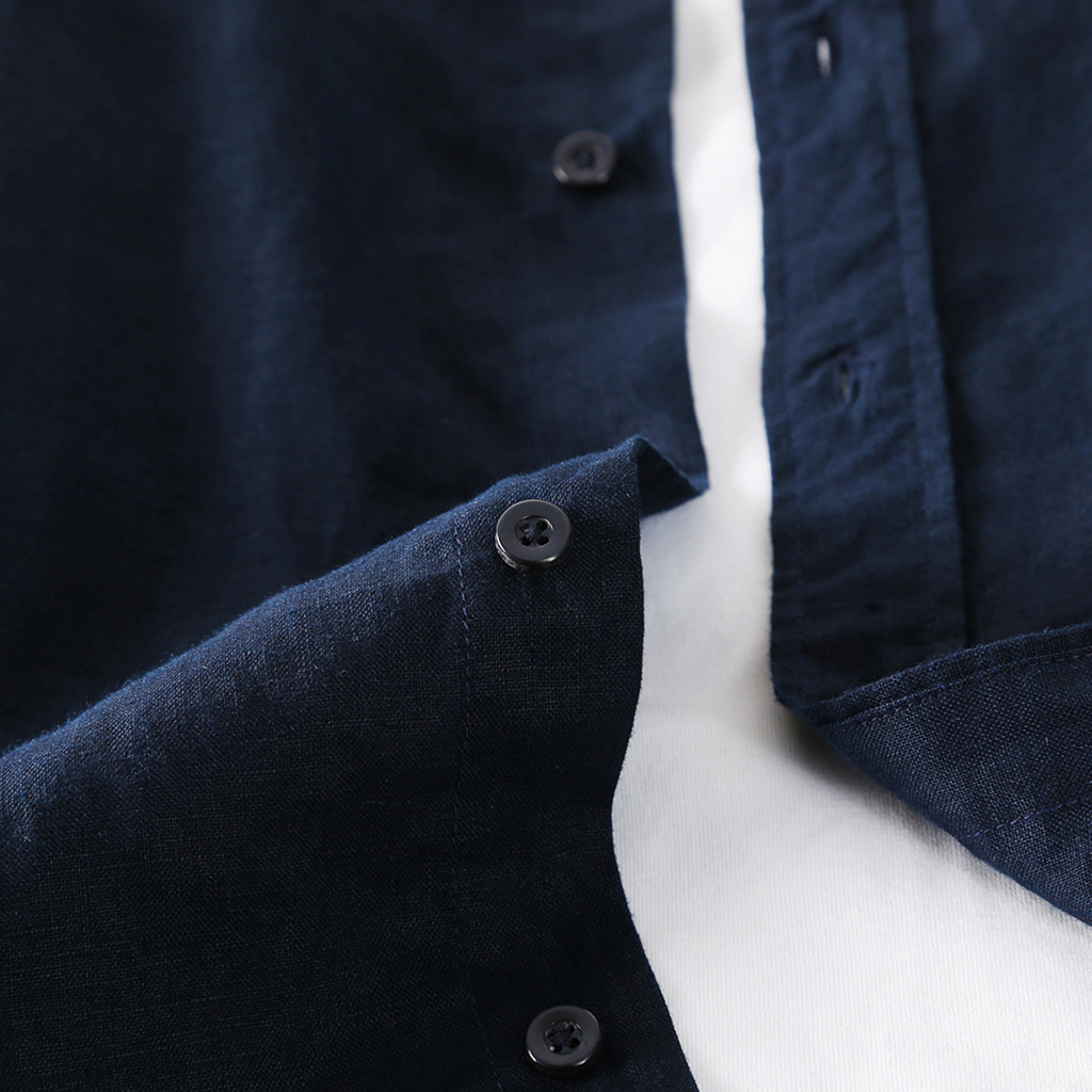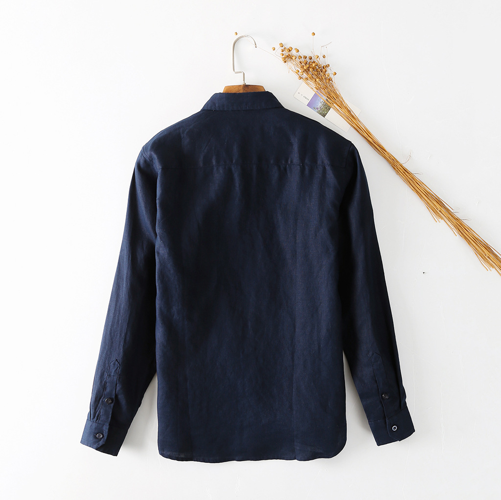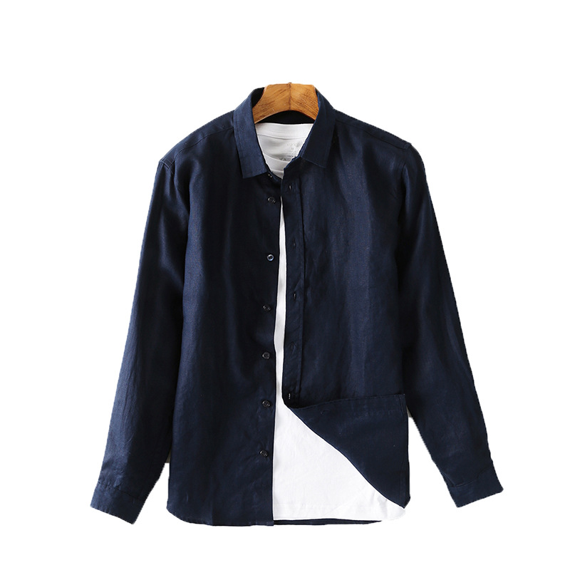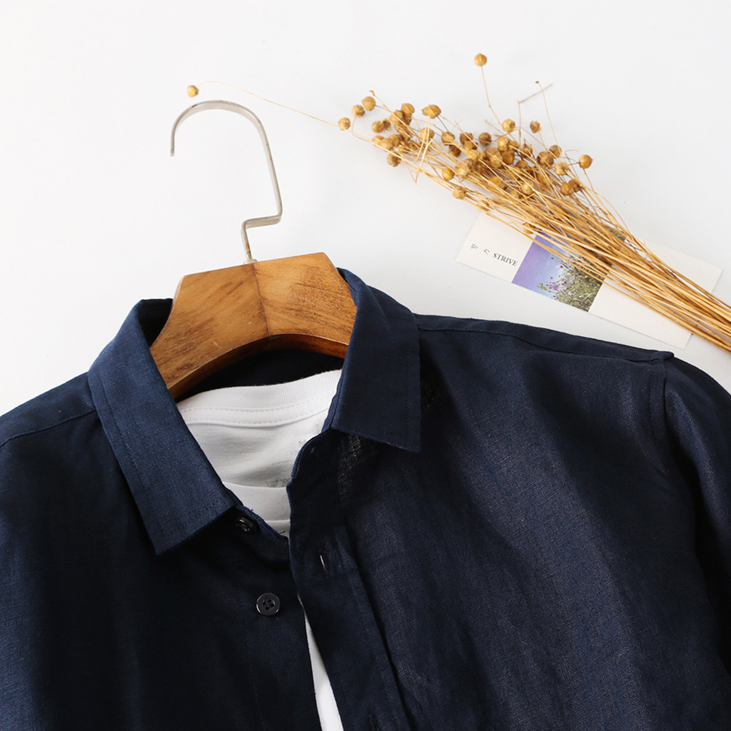 Spring Linen Men's Clothing Refreshing Casual Lapel Linen Top Simple Linen Shirt C054
