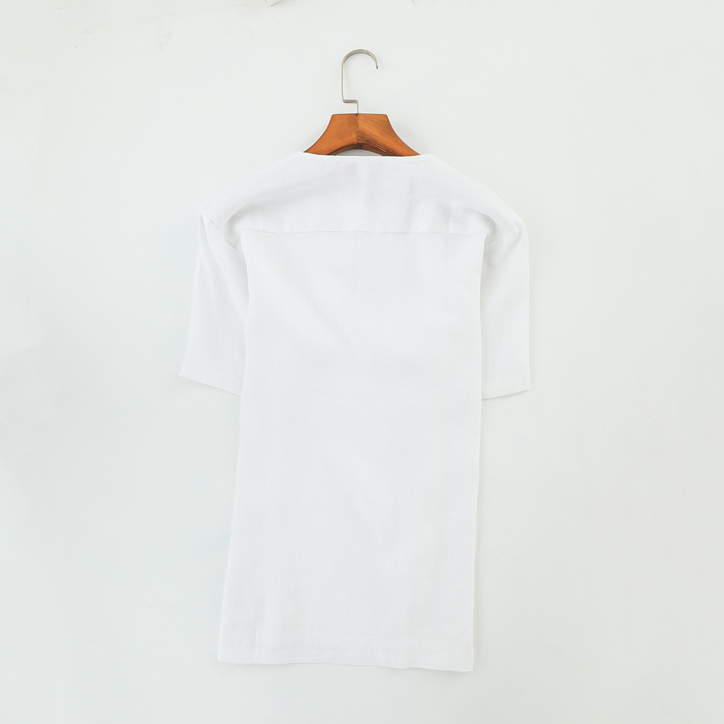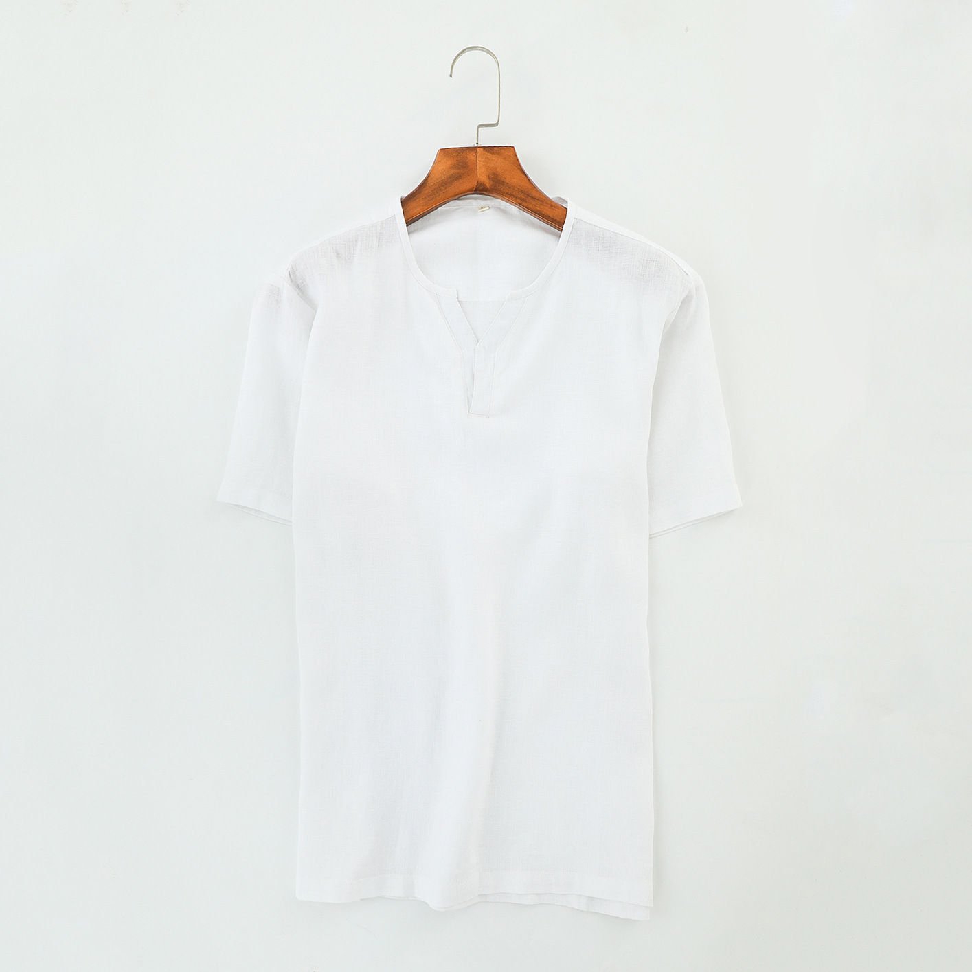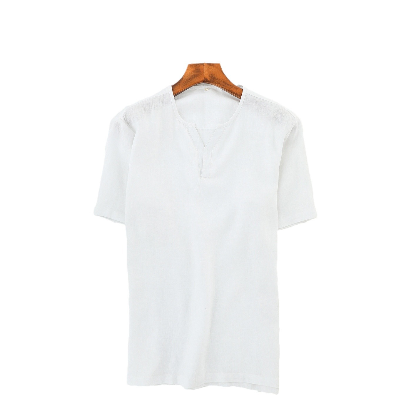 Summer Linen Men's Casual Linen Short-sleeved Men's Fresh And Fashionable Y-neck Pullover Linen Shirt B021
