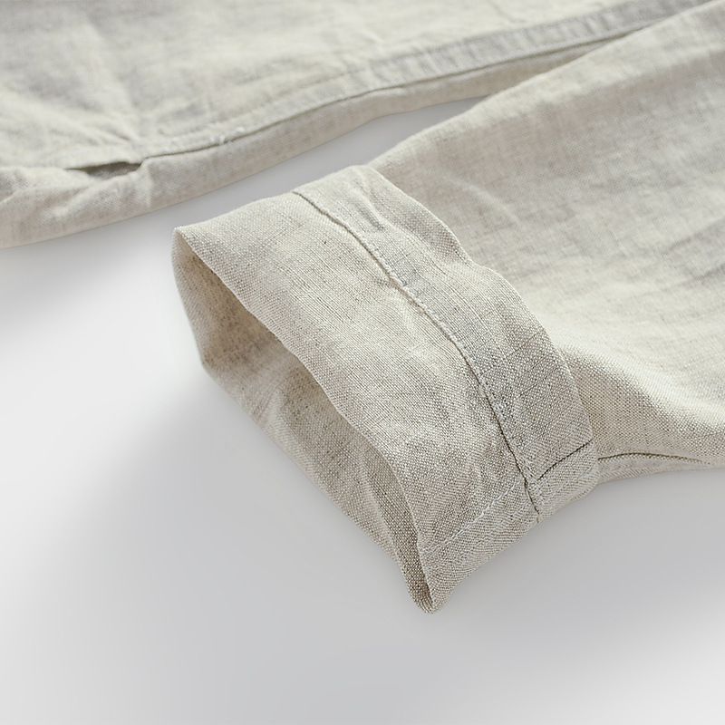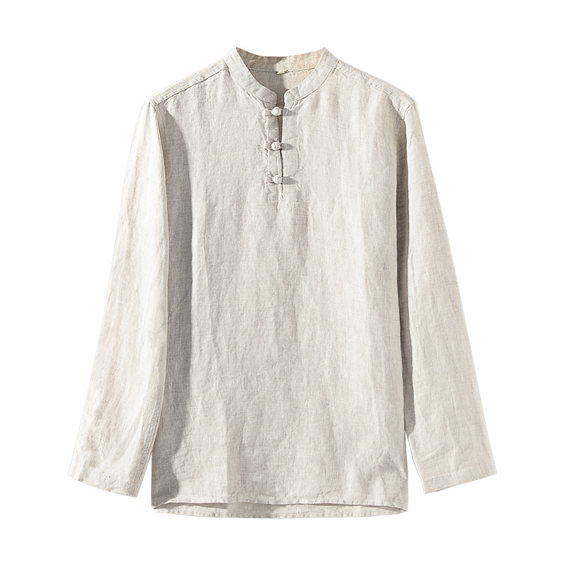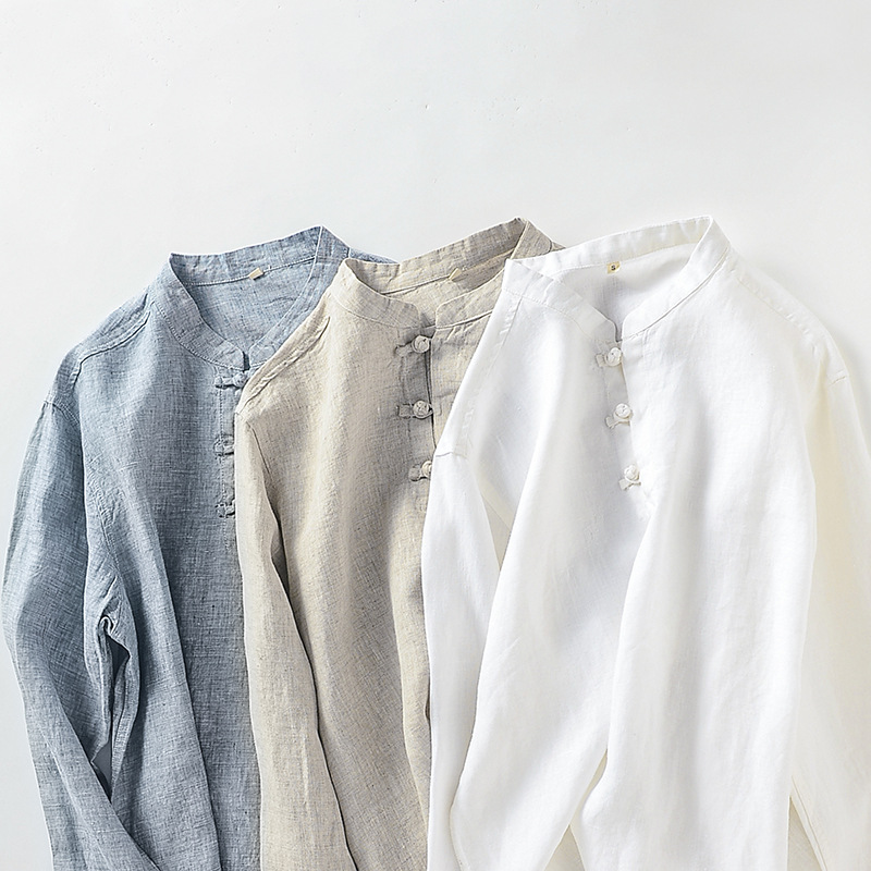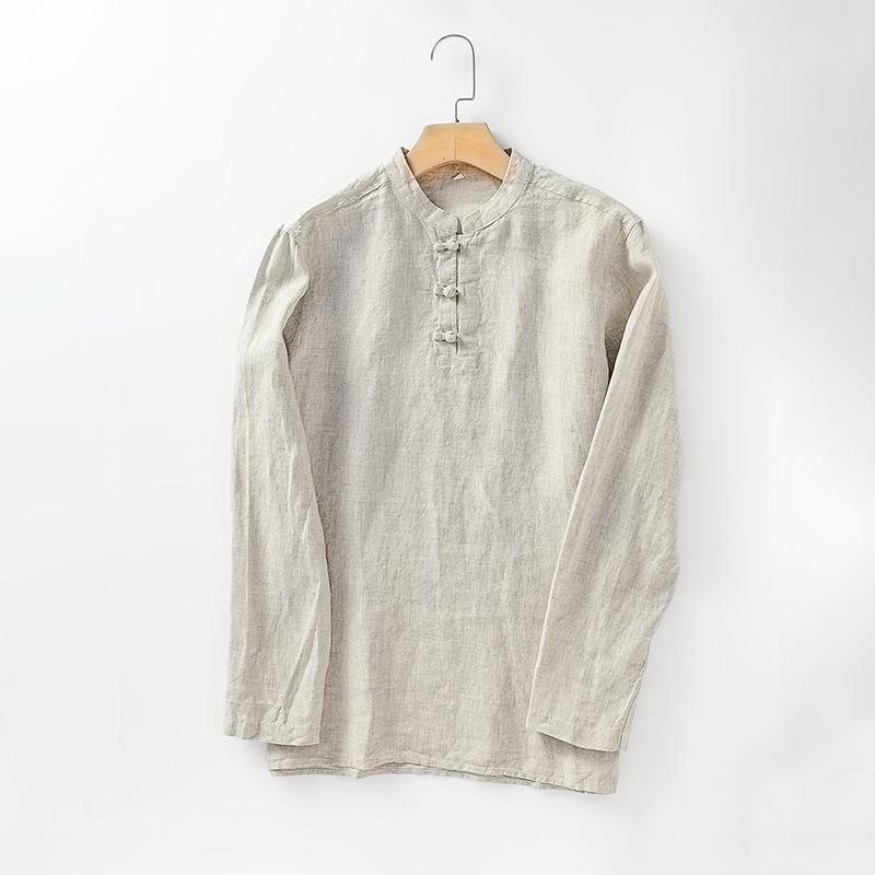 Spring Linen Men's Chinese Style Stand Collar Linen Shirt Casual Loose Breathable Long Sleeve Top B002
