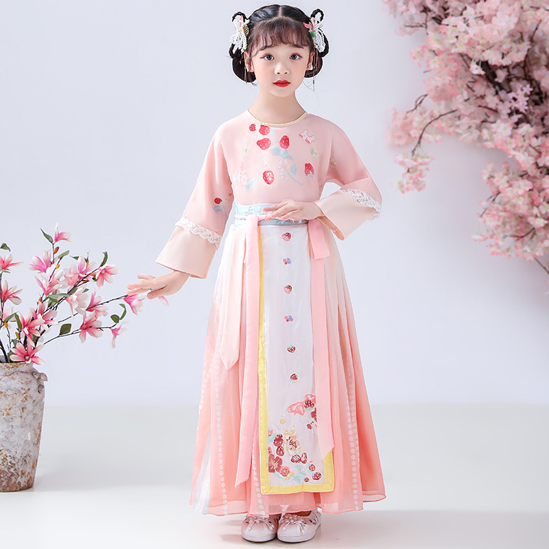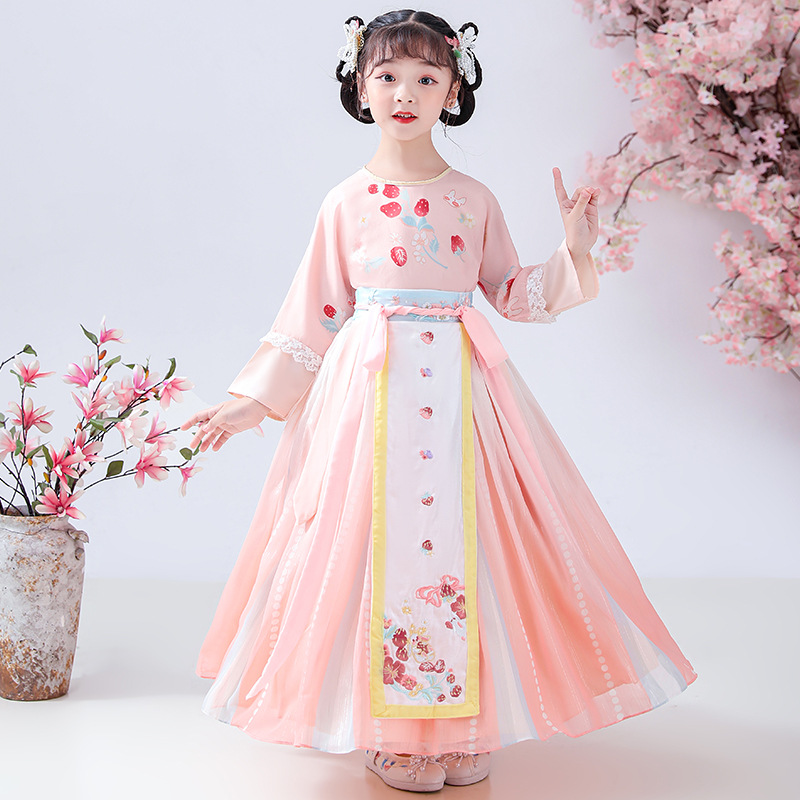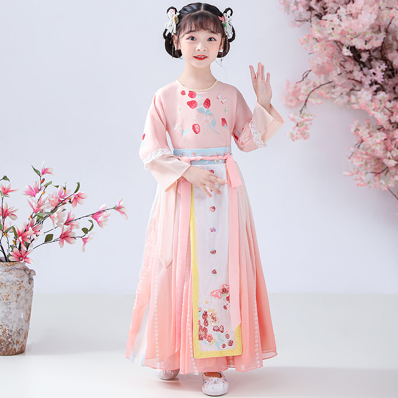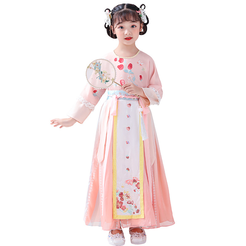 Autumn And Winter Children's Hanfu Girls Super Fairy Chinese Style Chinese Year Tang Suit Embroidery Ancient Costume Plus Velvet Children's Suit Hanfu