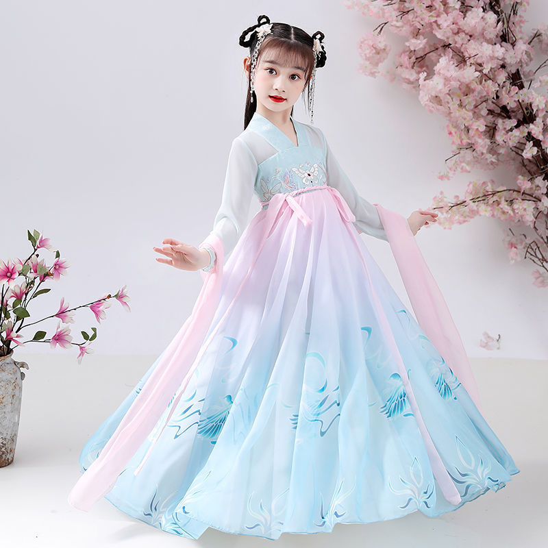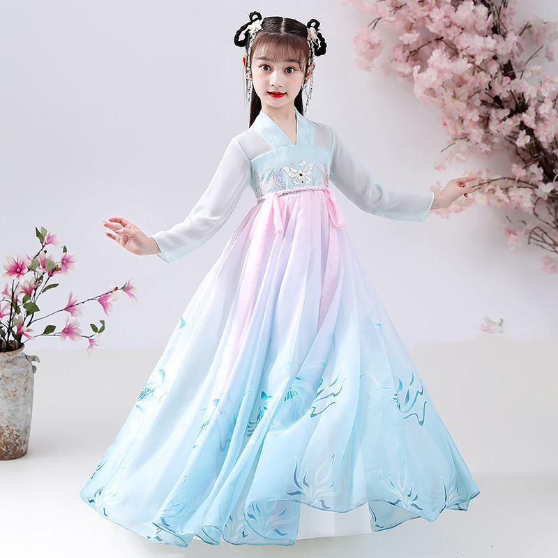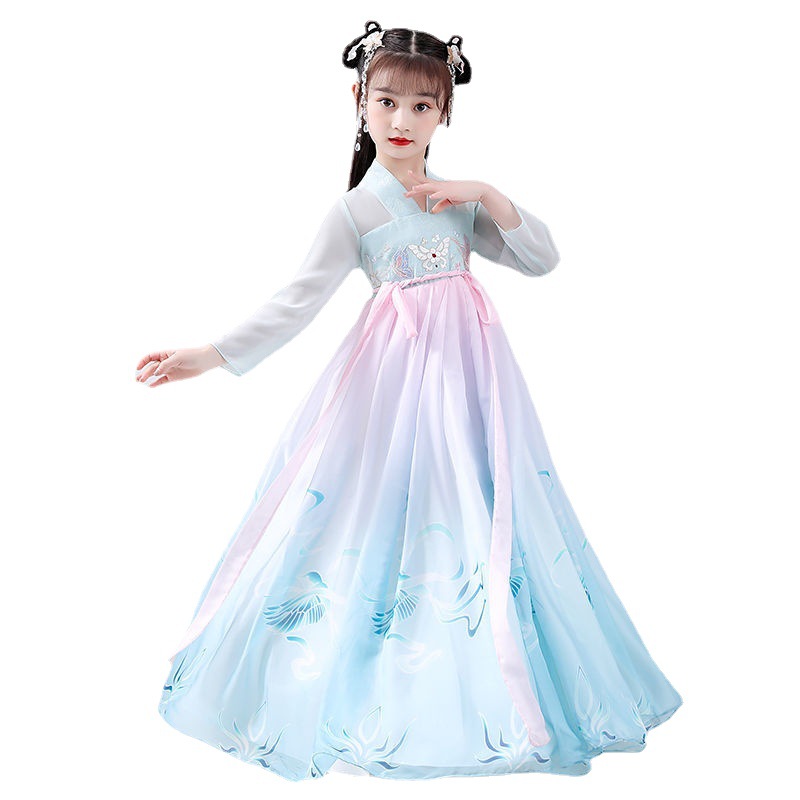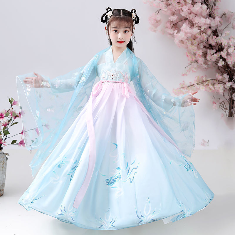 Girls'Super Fairy Hanfu Dress Children's Chinese Style Tang Suit Skirt Little Girl12 Years Old Gauze Ancient Costume Princess Skirt