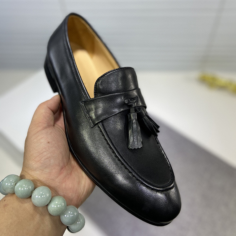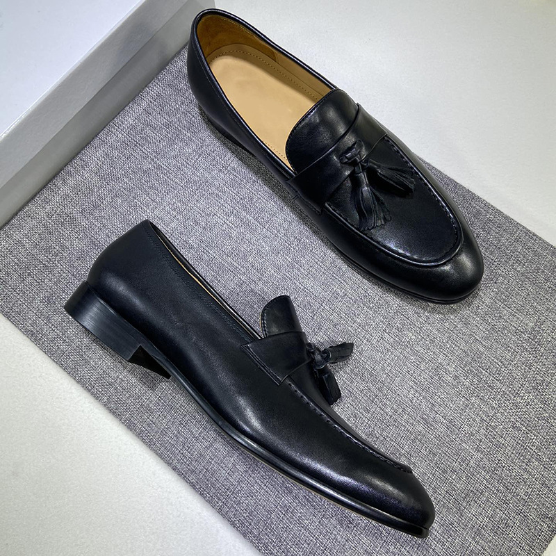 Set Of Men's Tassel Loafers Genuine Leather Korean Style Handmade Slip-on Business Formal Casual British Leather Shoes