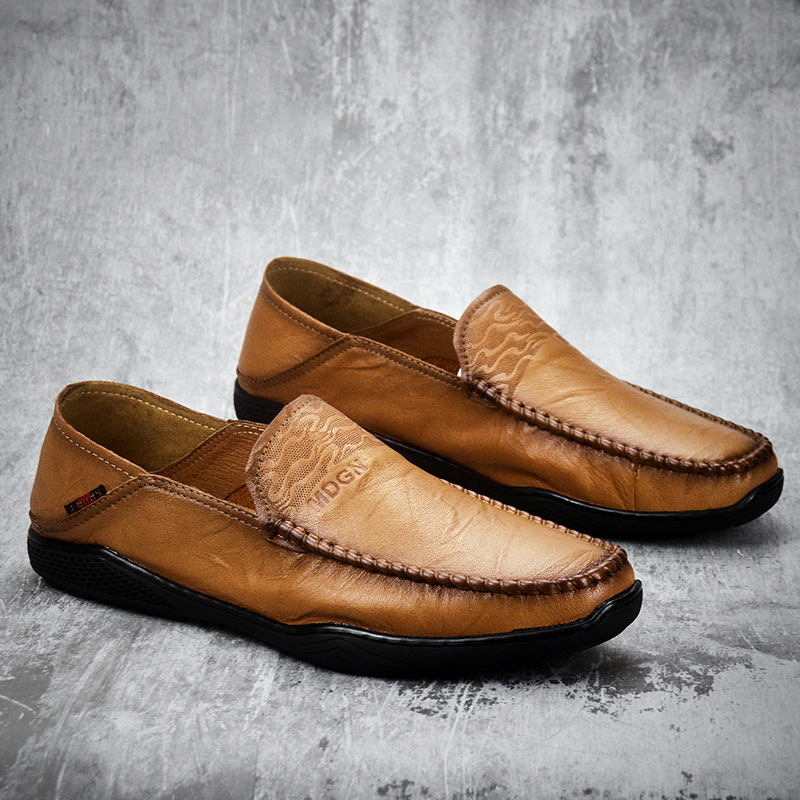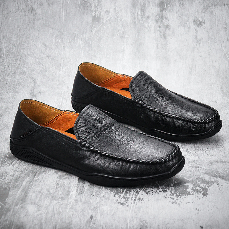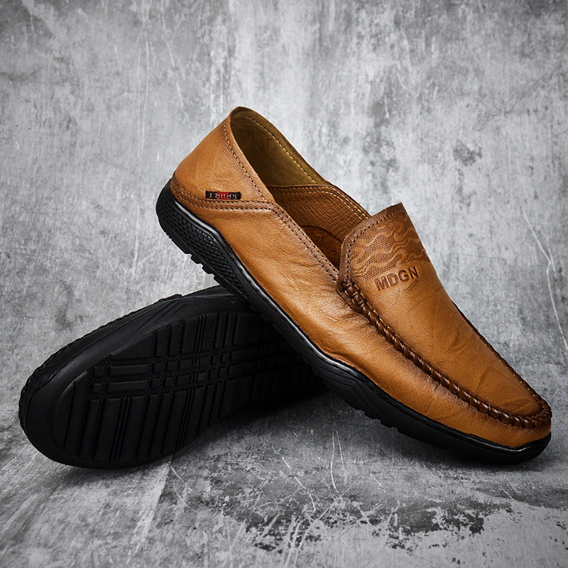 First-layer Cowhide Men's Casual Leather Shoes,Breathable Slip-on Slip-ons,Genuine Leather Round-toe Loafers,Low-top Men's Shoes