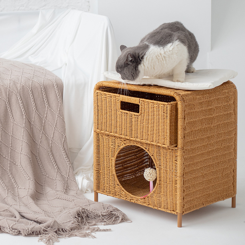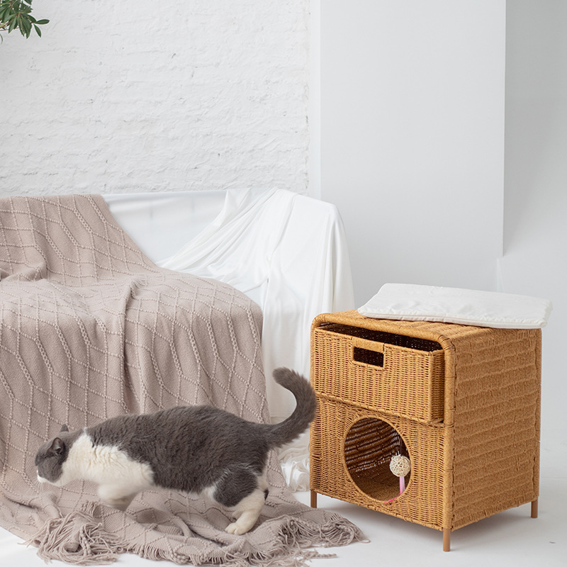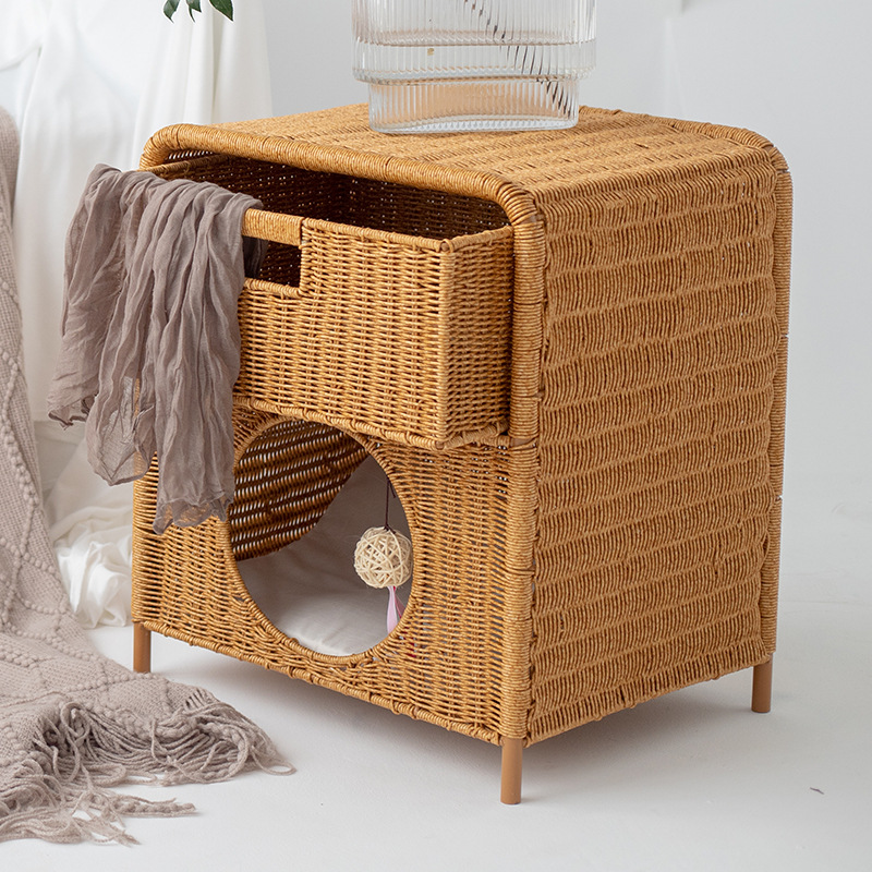 Universal Summer Semi-enclosed Double-layer Cat House Bedside Table Design For All Seasons Semi-enclosed House Rattan Cat Nest