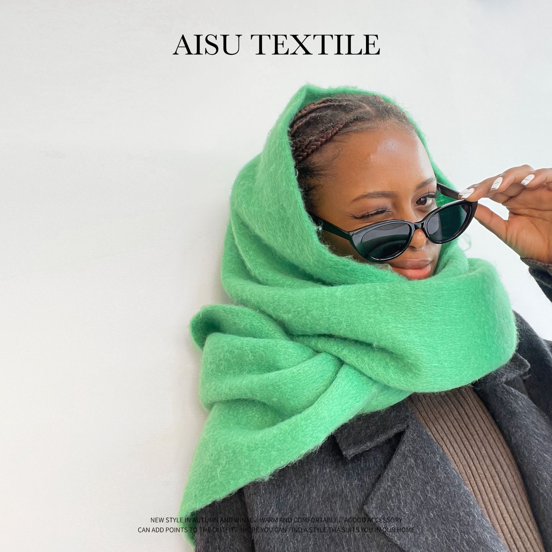 Autumn And Winter Seahorse Hair Scarf For Women, Versatile And High-end Wear, B Green Scarf, European And American Solid Color Shawl