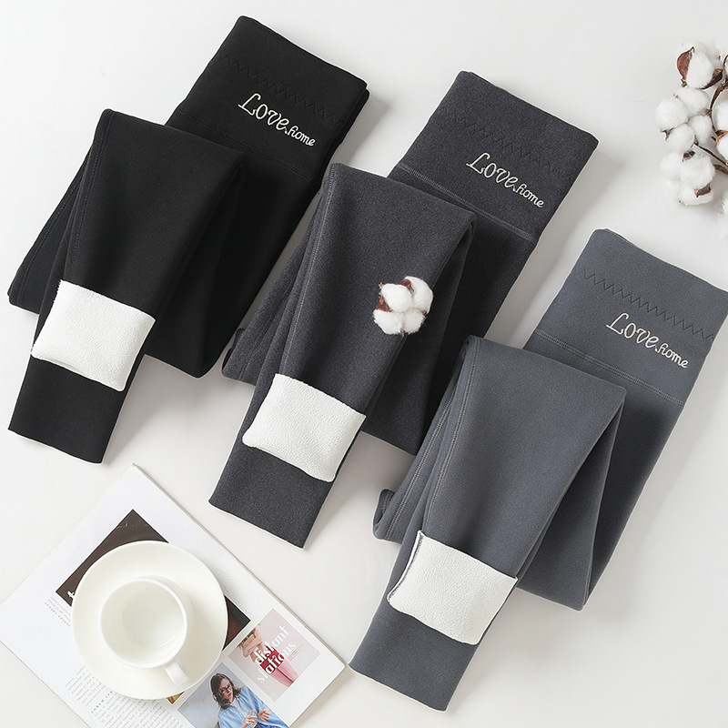 De Rong Sherpa Leggings For Women To Wear Outside In Winter,Plus Velvet And Thickened High-waisted Long Johns,Inner Threading Pants,Warm Cotton Pants For Women
