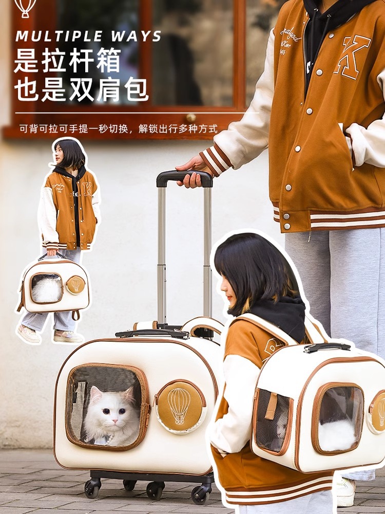 Cat Bag,Portable Pet Trolley Box,Cat Backpack,Dog Stroller,Travel Space Capsule,Cat Suitcase