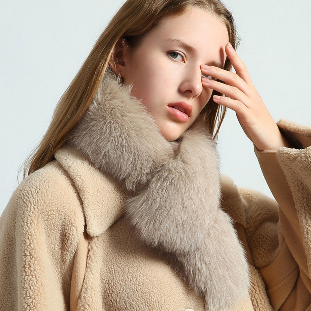 Style Whole Leather Fox Fur Scarf For Women Winter Korean Style Double-sided Fur Plush Scarf With Real Fur Collar