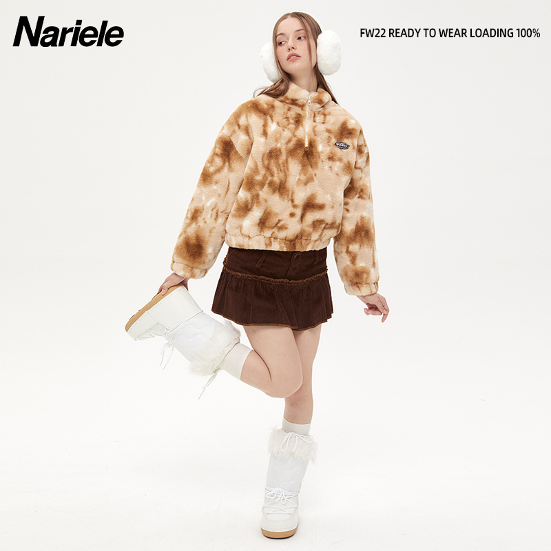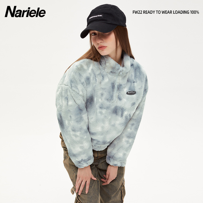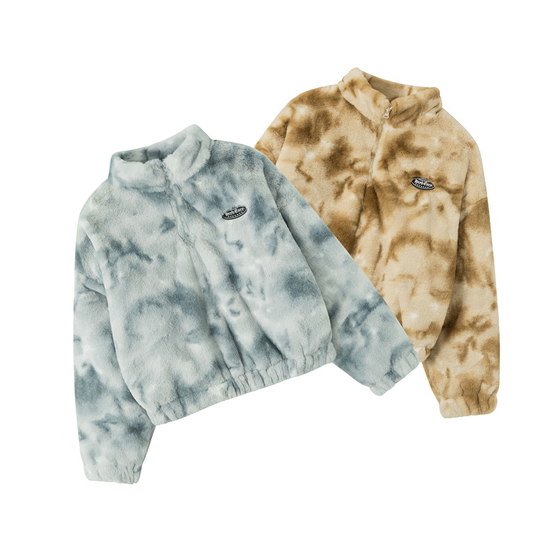 Hey Henry Plush Tie-Dye Stand-Up Collar Niche Cotton Jacket Girlsy Street Autumn And Winter Tops
