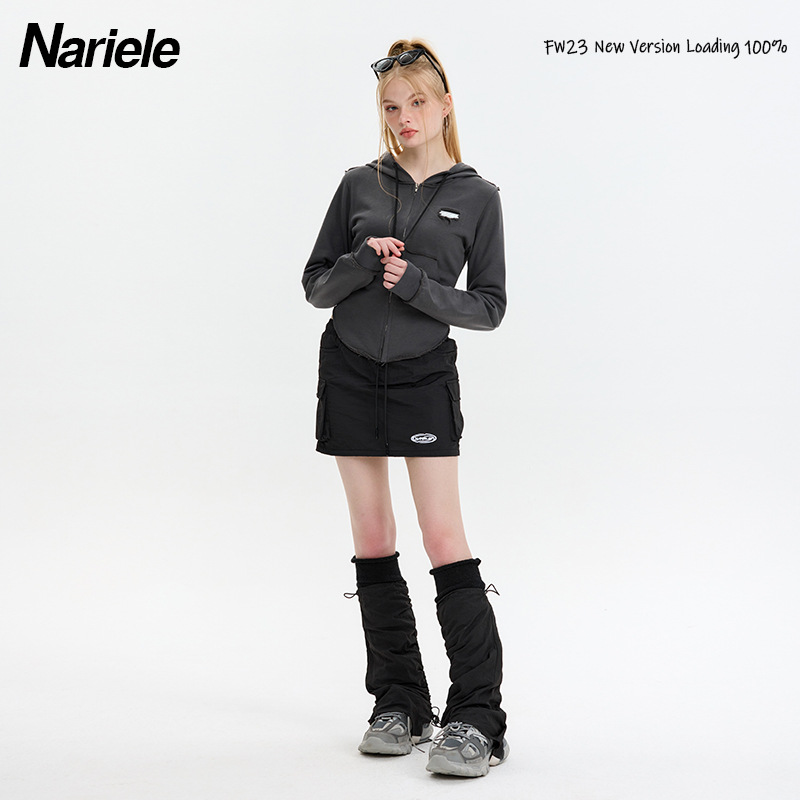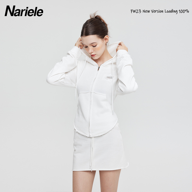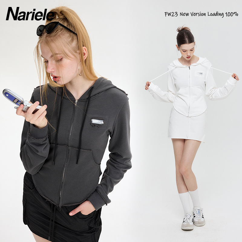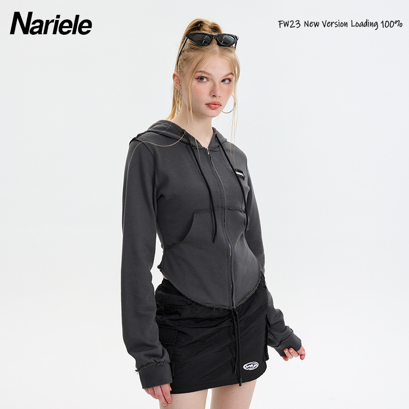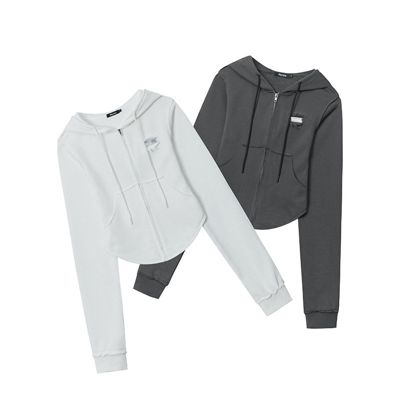 Hey Henry European And American Design Niche Short High Waist Slimming Sweater Hot Girl Hooded Zipper Cardigan Top