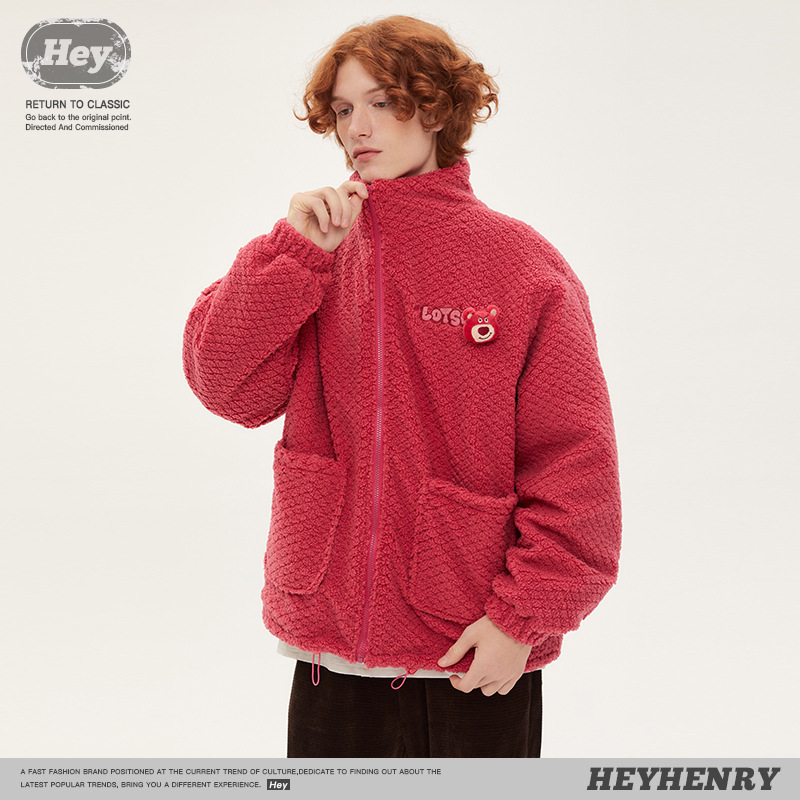 Hey Henry Strawberry Bear Cardigan Jacket Pineapple Pattern Plush Style Cute Cartoon Tops For Boys And Girls