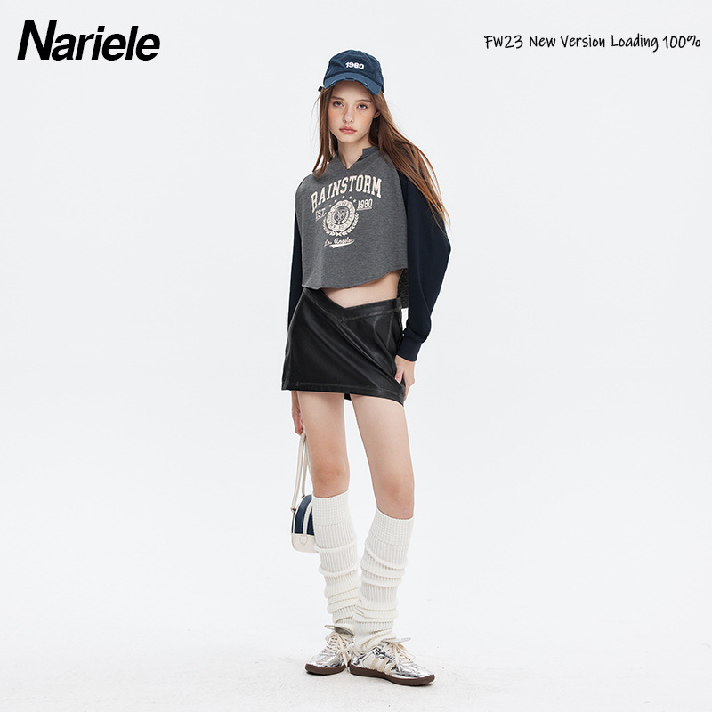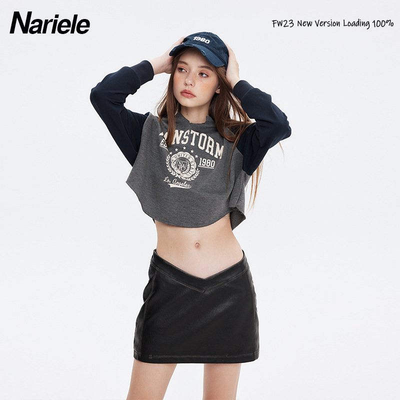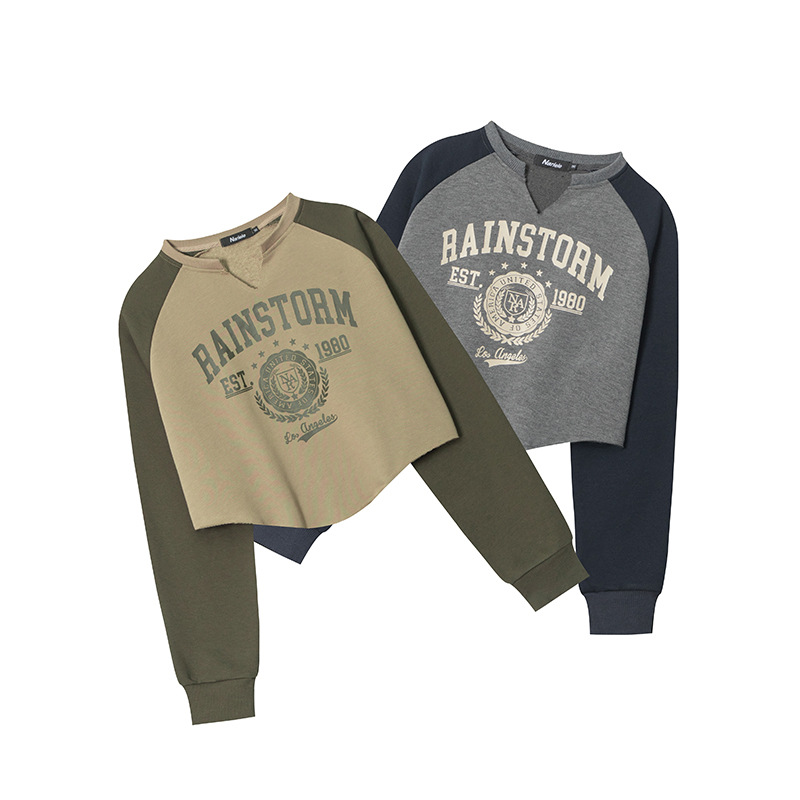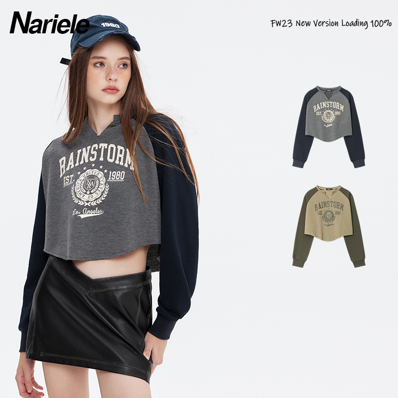 Hey Henry Autumn College Style Loose Short Sweatshirt Women's Printed Letter Long Sleeve T-shirt V-neck Top