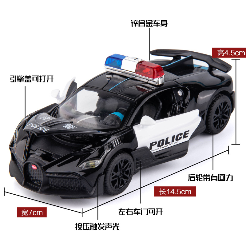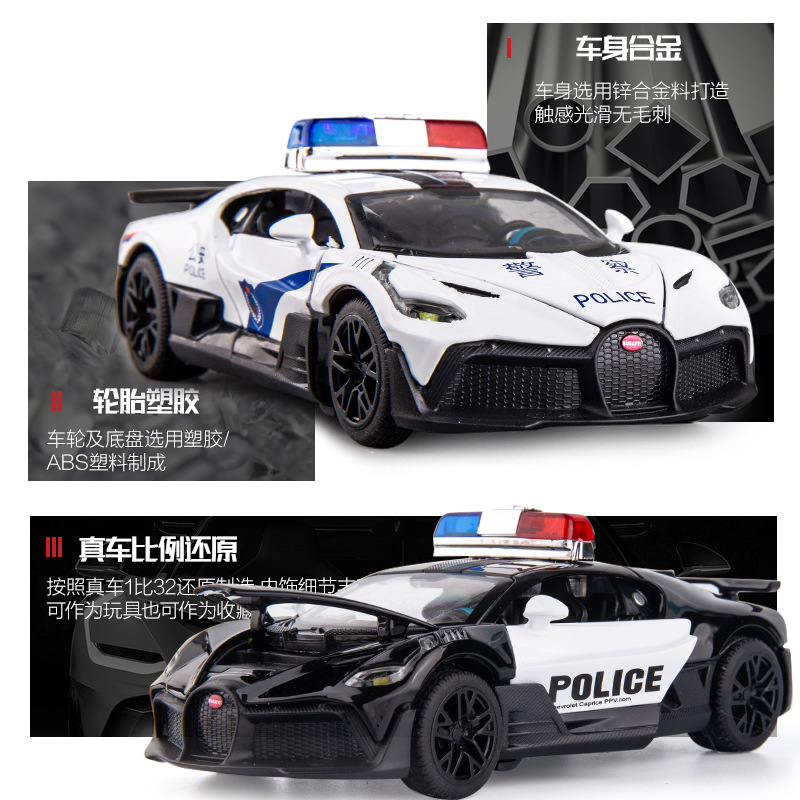 (Boxed)Simulation1:32 Bugatti Police Car Alloy Sports Car Model Ornament Children's Toy Dropshipping