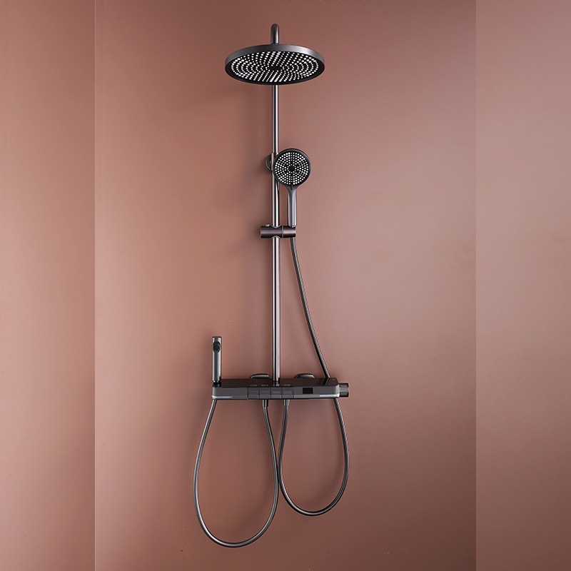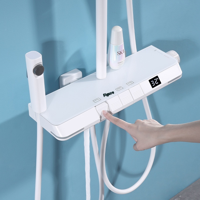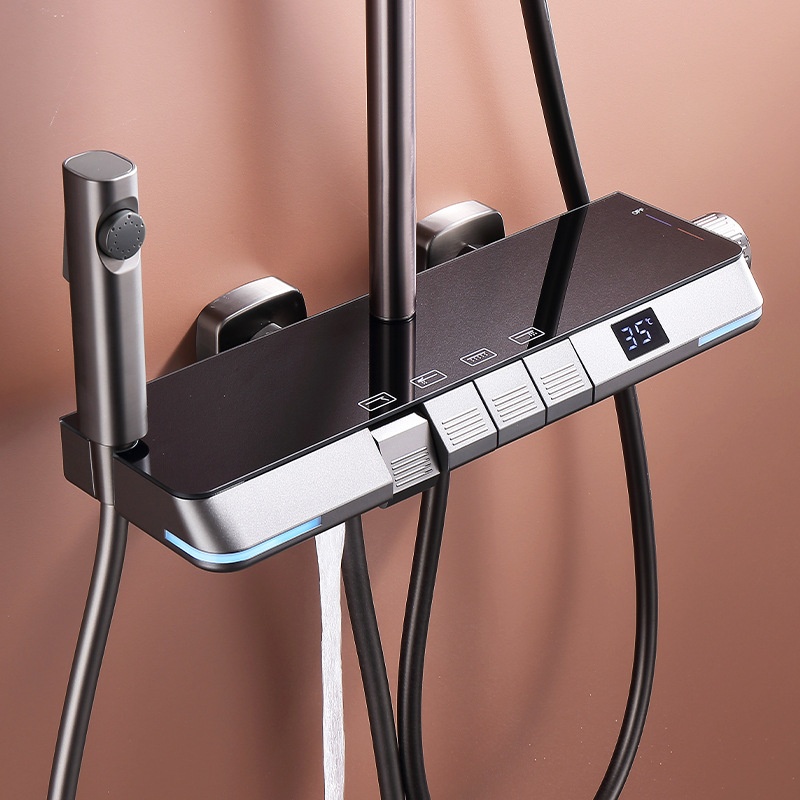 L E D Digital Display Piano Button Shower Set Home Bath Shower Gun Gray White Four-function Constant Temperature Shower