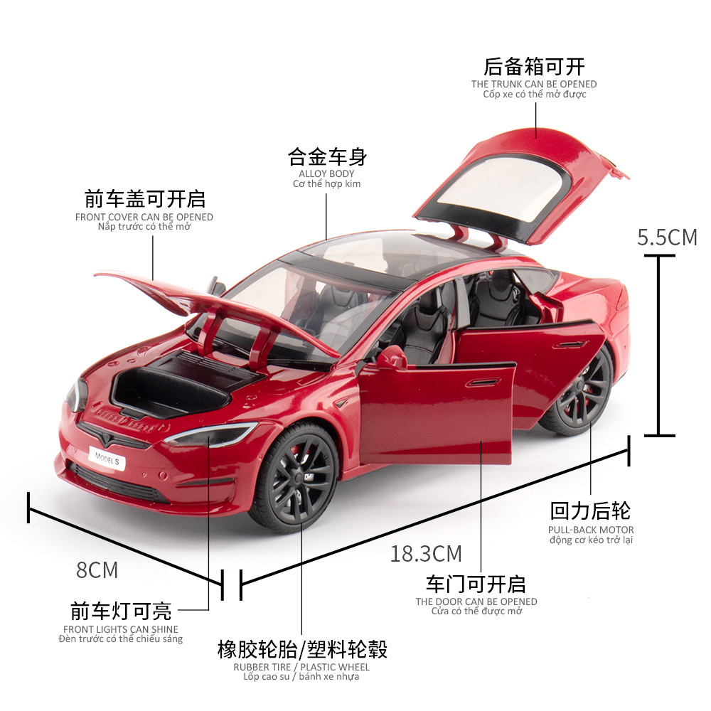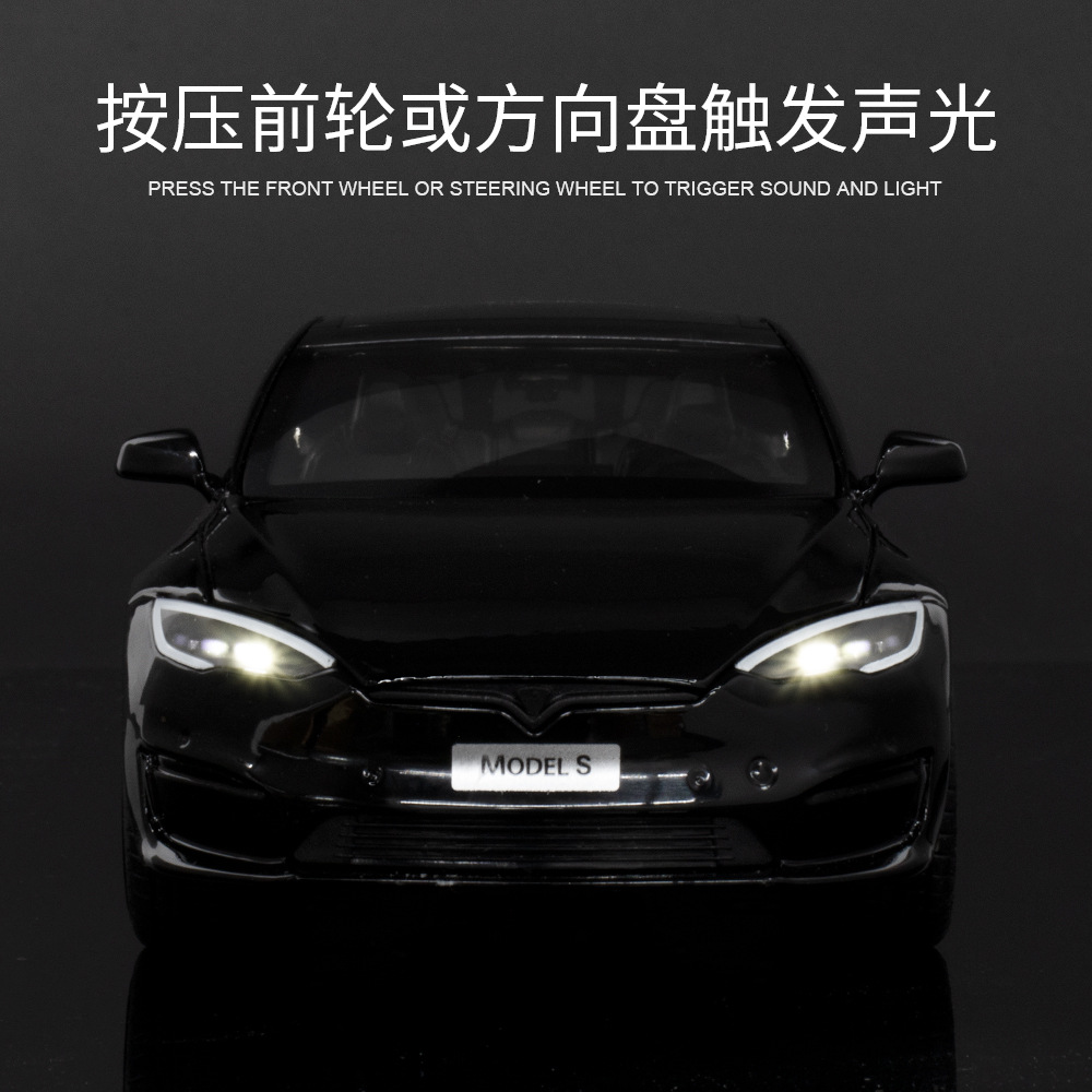 (Foam Box)Simulation1:24 Tesla Model SAlloy Car Model Ornament Toy With Sound And Light