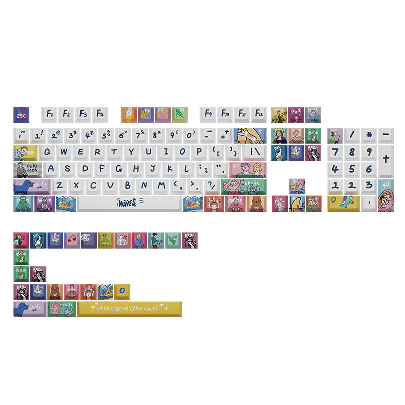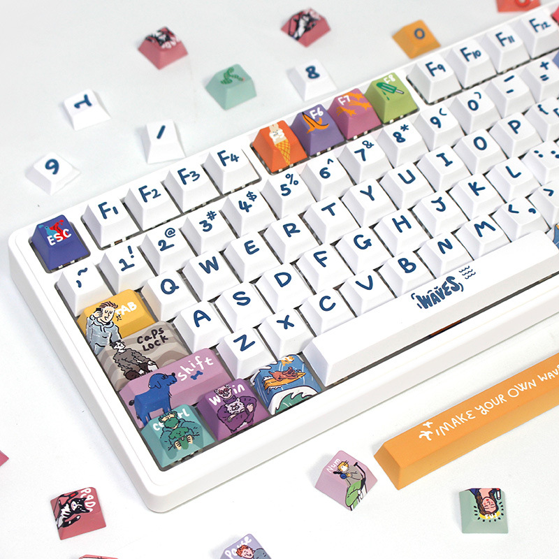Wave Theme Original Height Keycap Mechanical Keyboard PBTSublimation Keycap Support Customization