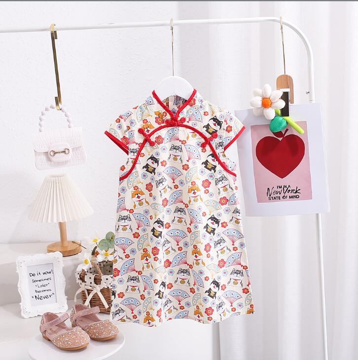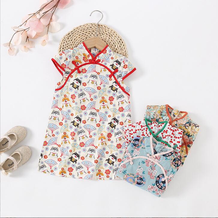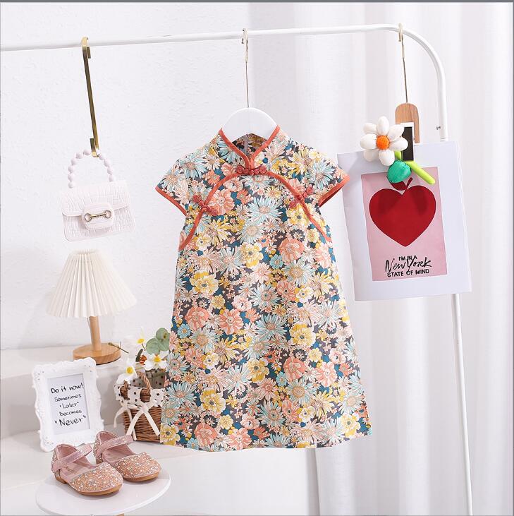 Children's Clothing Girls Floral Cheongsam Chinese Style Korean Style Baby Thin Skirt Cotton Short-sleeved A-line Hanfu