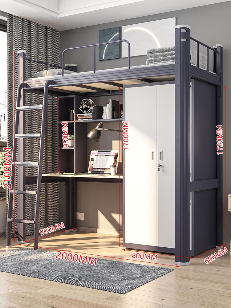 Upper Bed And Lower Table Combination Bed Apartment Loft Bed Upper And Lower Double-layer Wrought Iron Steel Frame Bed Iron Bed Student Dormitory Bed