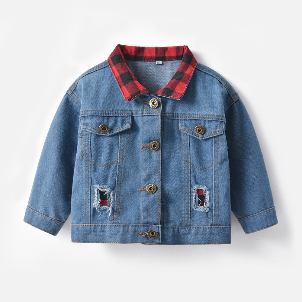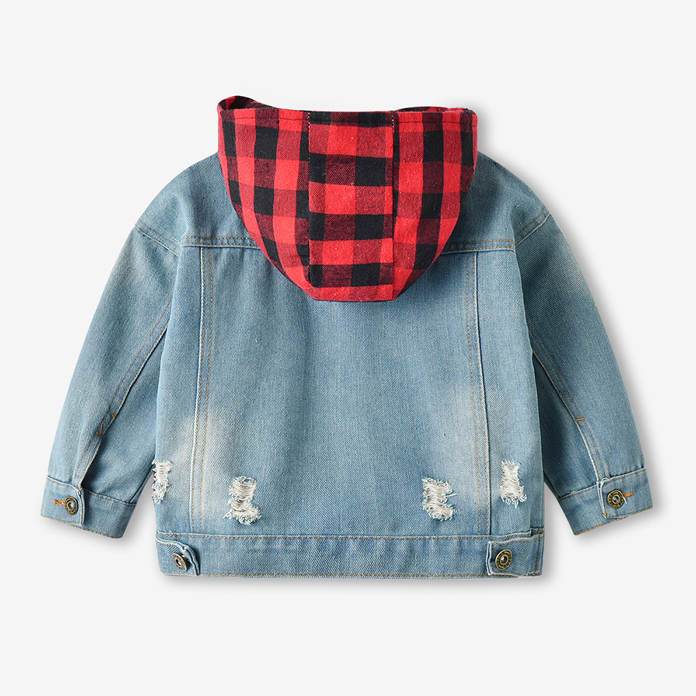 Spring Children's Unisex Long-sleeved Ripped Hooded Denim Jacket Kids Denim Jacket Korean Style Denim Jacket
