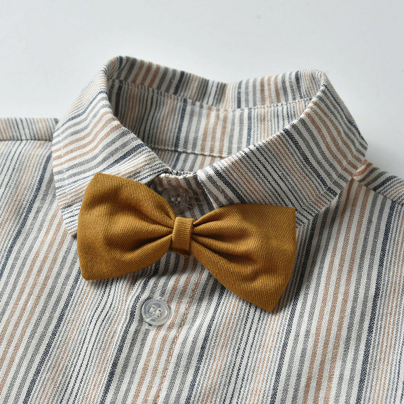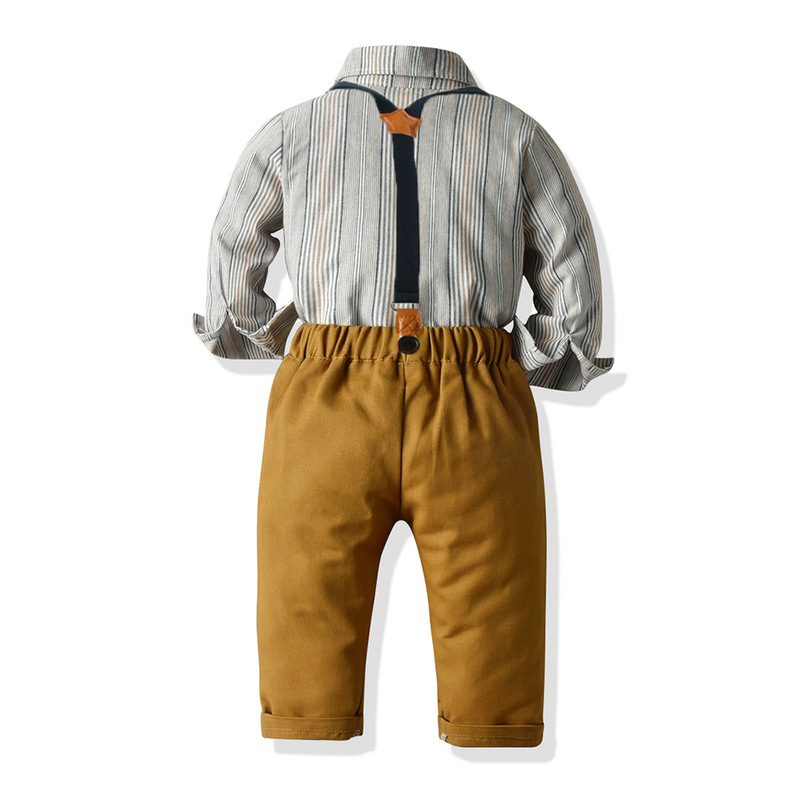 Korean Children's Clothing Spring And Autumn Baby Long-sleeved Striped Shirt Gentleman Suspenders Trousers Bow Tie Two-piece Boy Suit