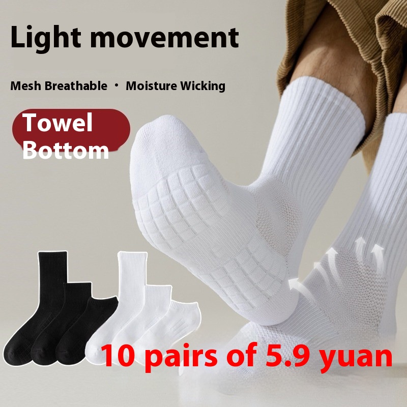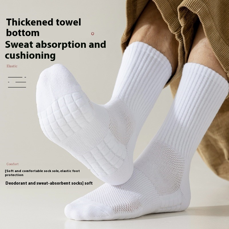 White Socks Men's Towel Bottom Spring And Autumn Mid-calf Socks Spring And Summer Mesh Socks Long Men's Sports Socks Basketball Socks