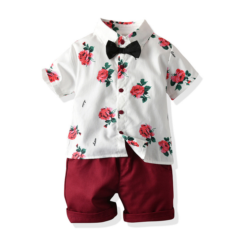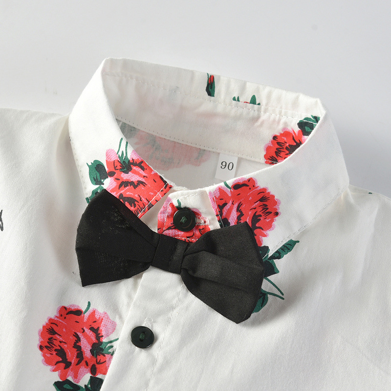 Ready-made Suspender Suit Summer Boys Printed Bow Shirt Shorts Two-piece Set Baby Hot Batch