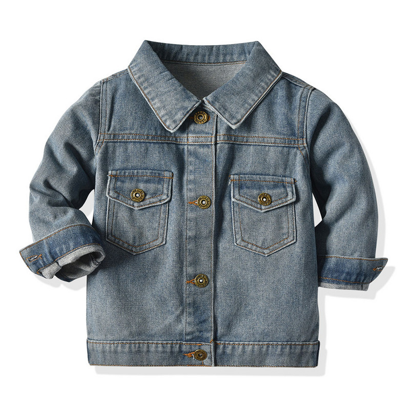 Autumn Top Korean Style Children's Denim Jacket Lapel Long Sleeve Male And Female Baby Jacket