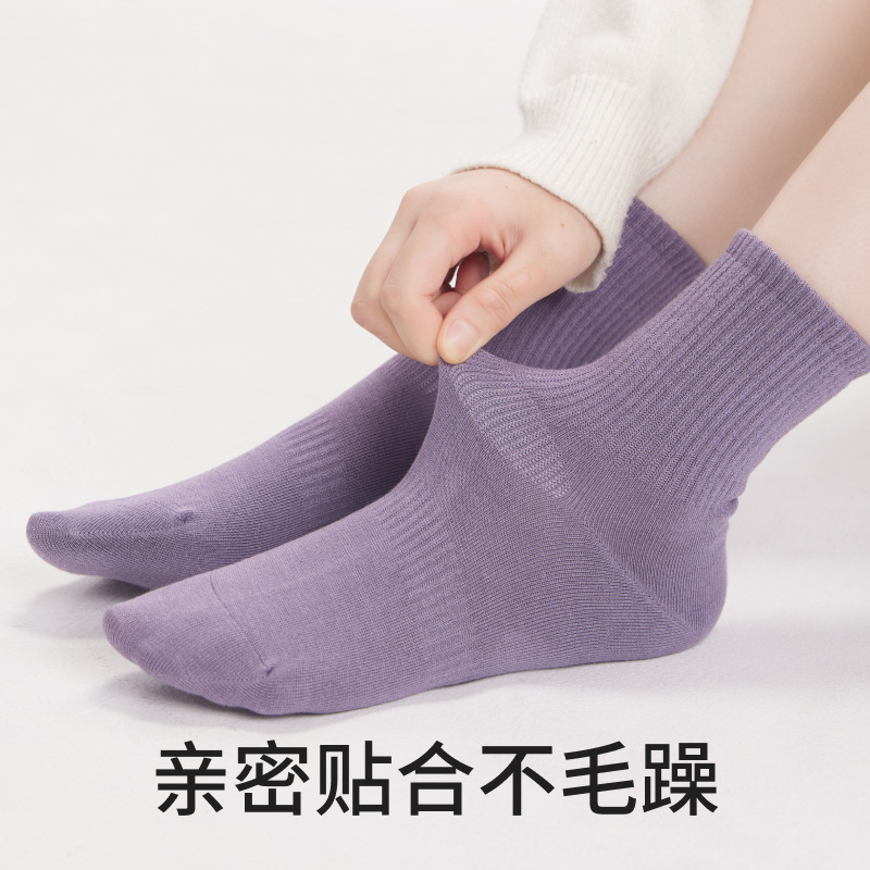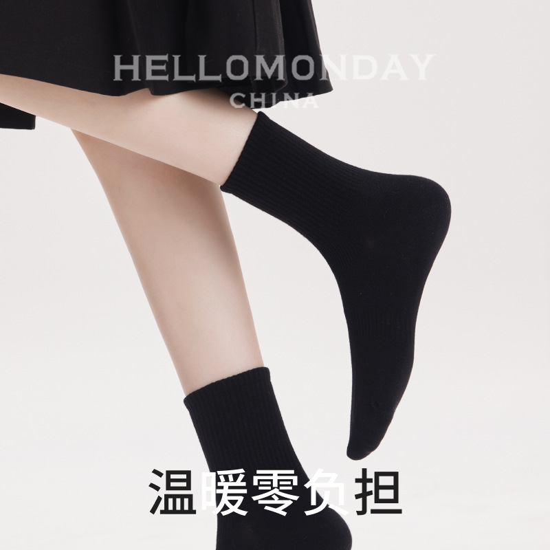 85089 Zhuji Socks Women's Solid Color Self-heating Warm Mid-calf Socks Autumn And Winter Style Deodorant And Sweat-absorbent Maillard Stockings