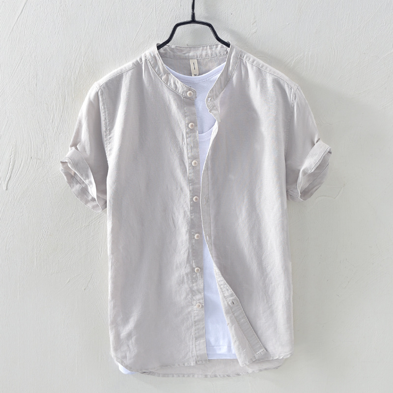 Cotton And Linen Men's Summer Cotton And Linen Short-sleeved Shirt Men's Linen Casual Half-sleeved Cardigan Shirt Thin And Breathable