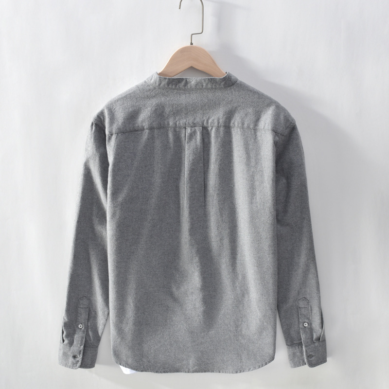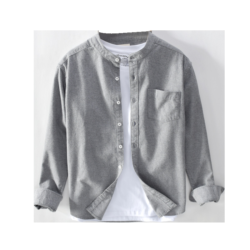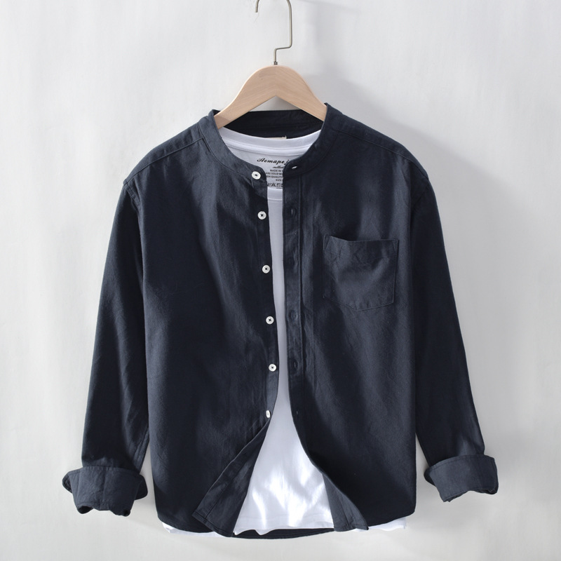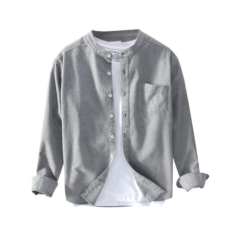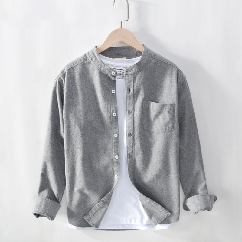 Spring And Autumn Men's Long Sleeve Stand Collar Shirt Solid Color Casual Simple Versatile Shirt Men's One Piece Dropshipping