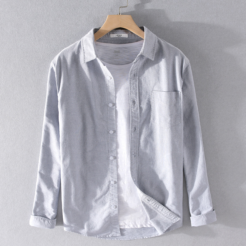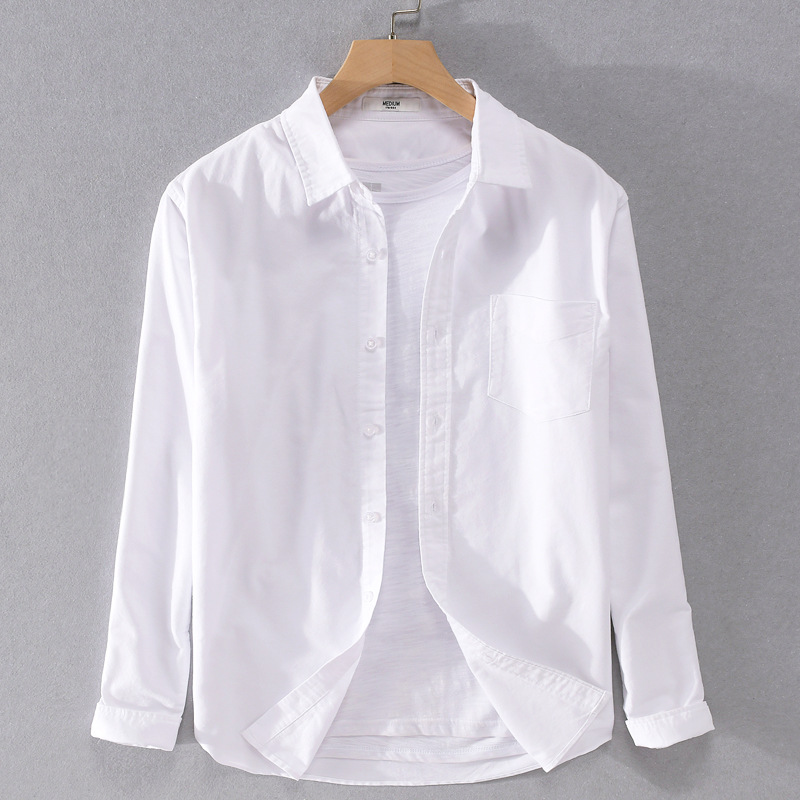 Men's Oxford Spinning Long-sleeved Shirt,Cotton Casual,Versatile Solid Color Top,Slim White Shirt,y Men9249