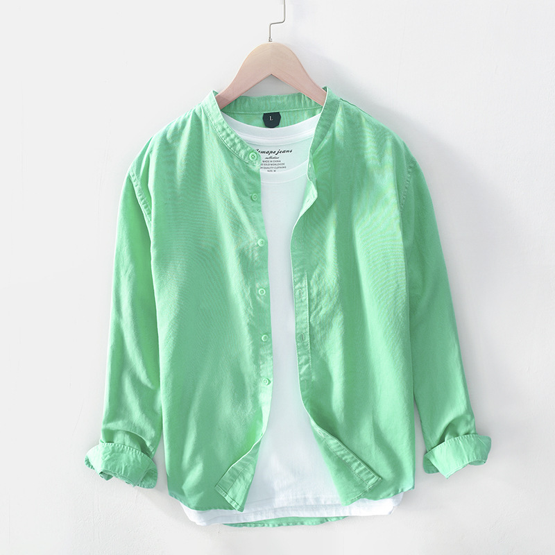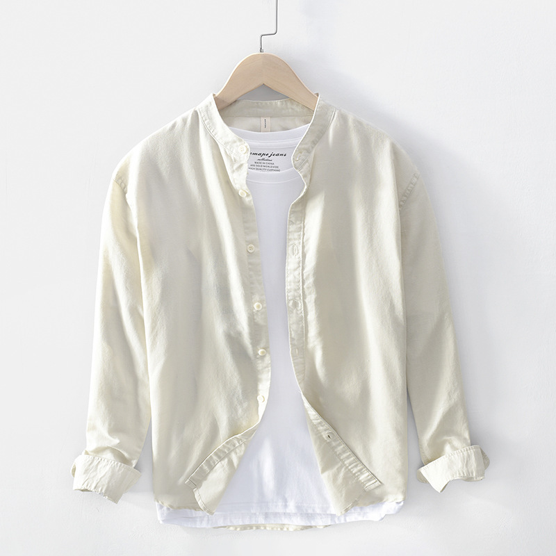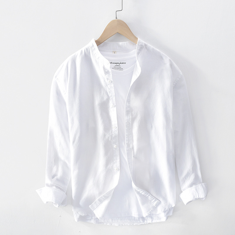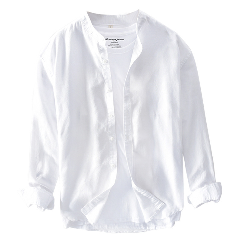 Solid Color Cotton And Linen Shirt Men's Spring Long-sleeved Casual Versatile Handsome Men's Japanese Loose Stand-up Collar Linen Shirty