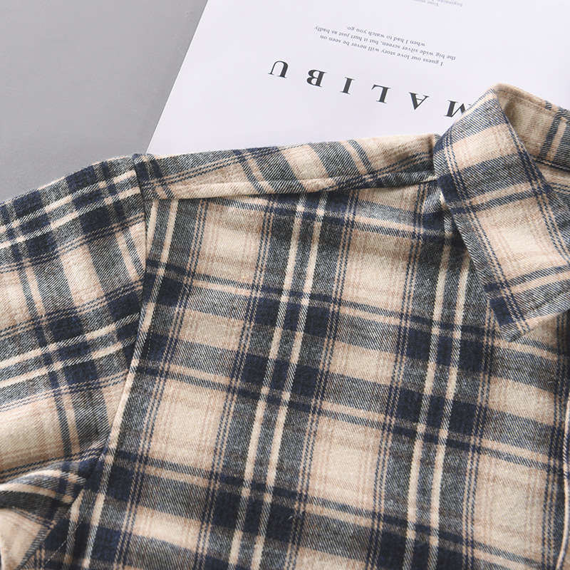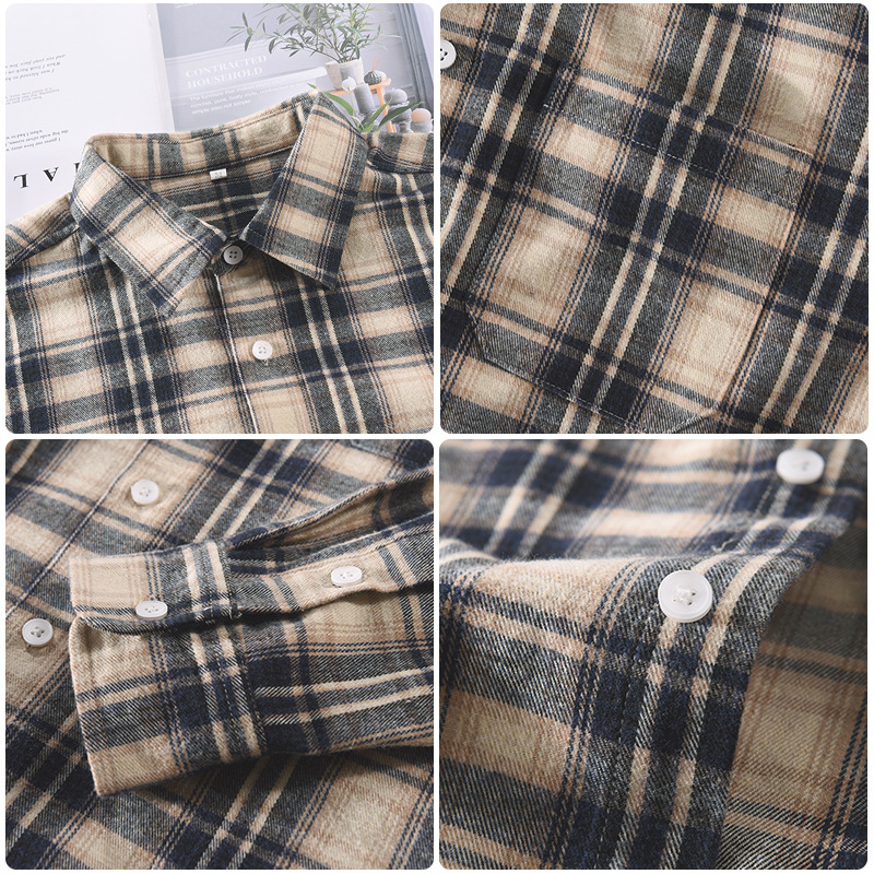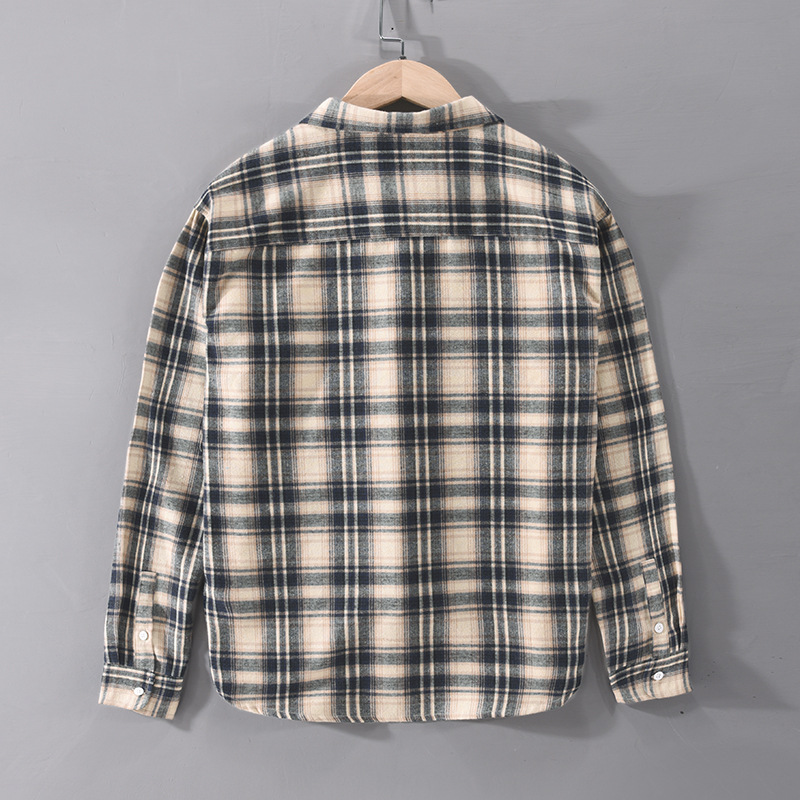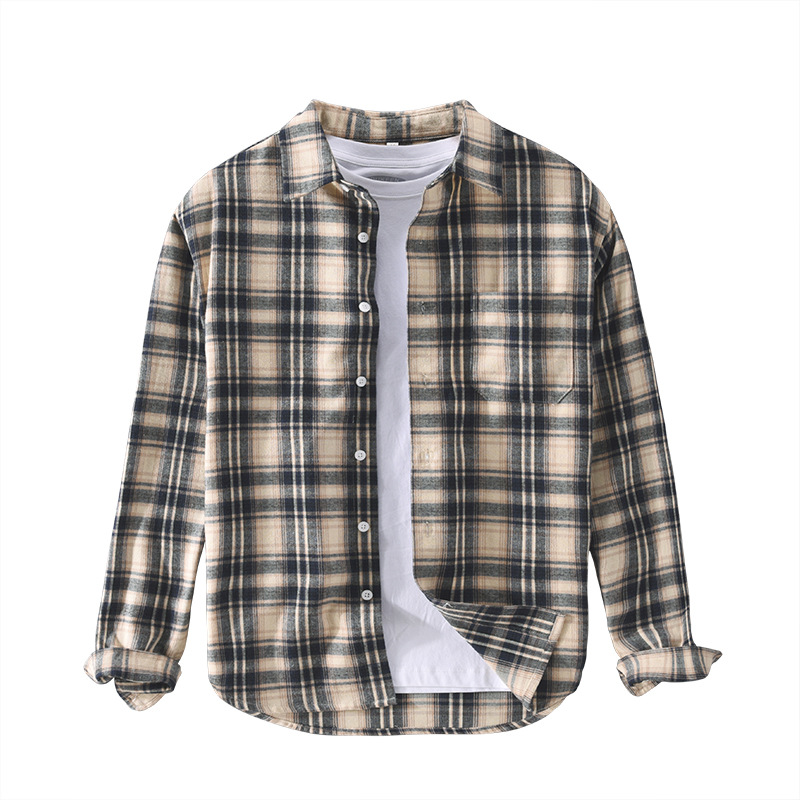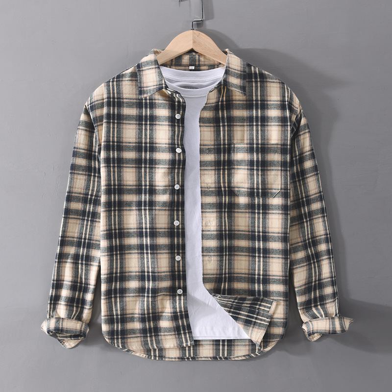 High Street Retro Plaid Long-sleeved Shirt Men's Korean Styley Loose Spring And Autumn Coaty Brand Shirt Student Inner Wear