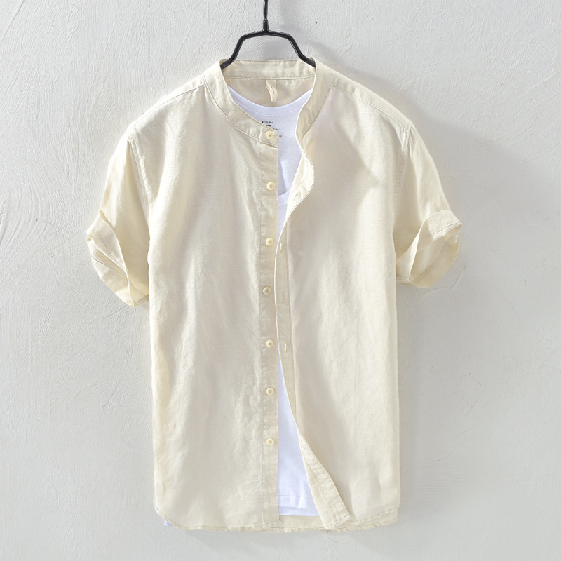 Cotton And Linen Men's Summer Cotton And Linen Short-sleeved Shirt Men's Linen Casual Half-sleeved Cardigan Shirt Thin And Breathable