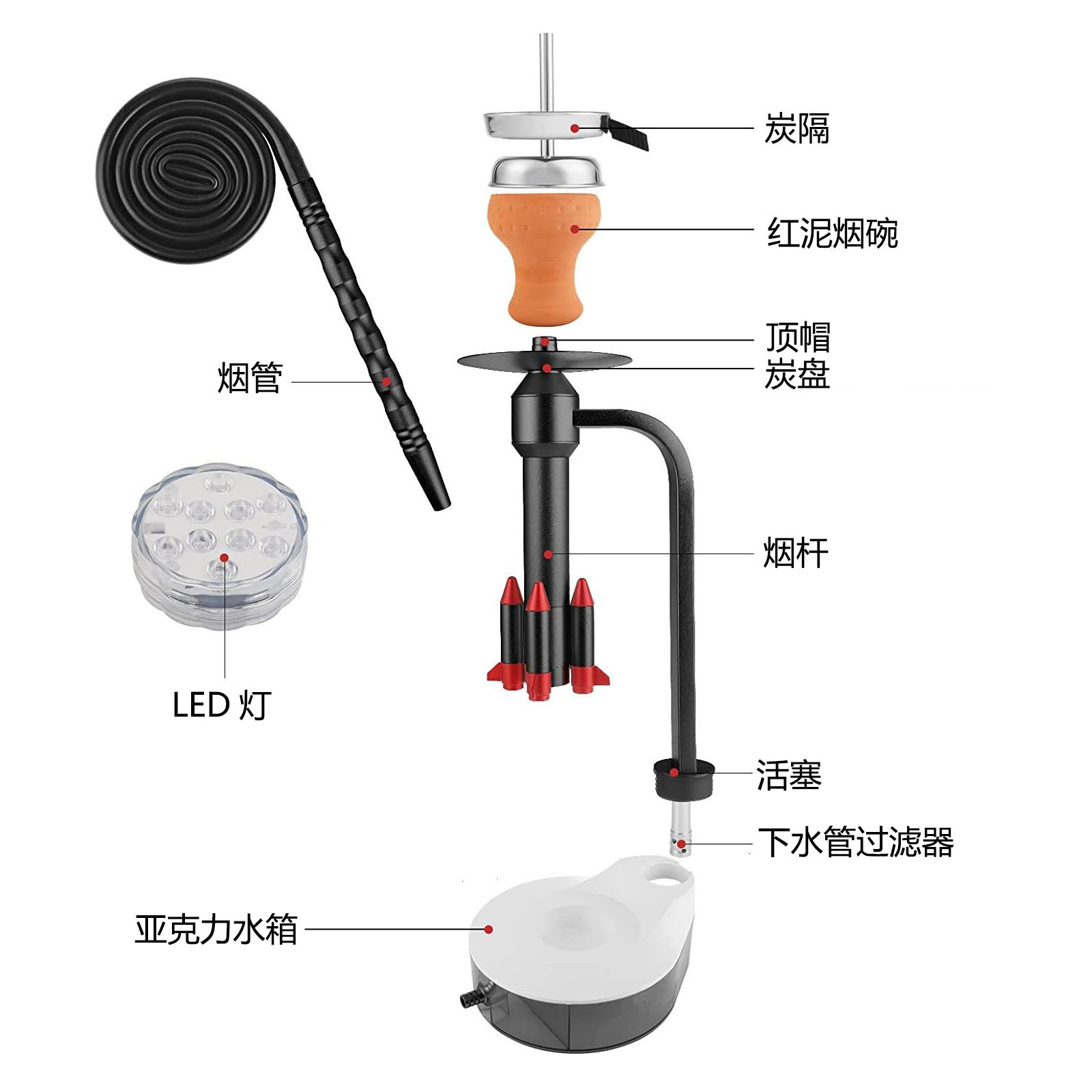 Arabian Shisha Complete Set Of LEDLuminous Hookah Bar Club Tobacco Bottle Hookah Accessories Smoke Cream