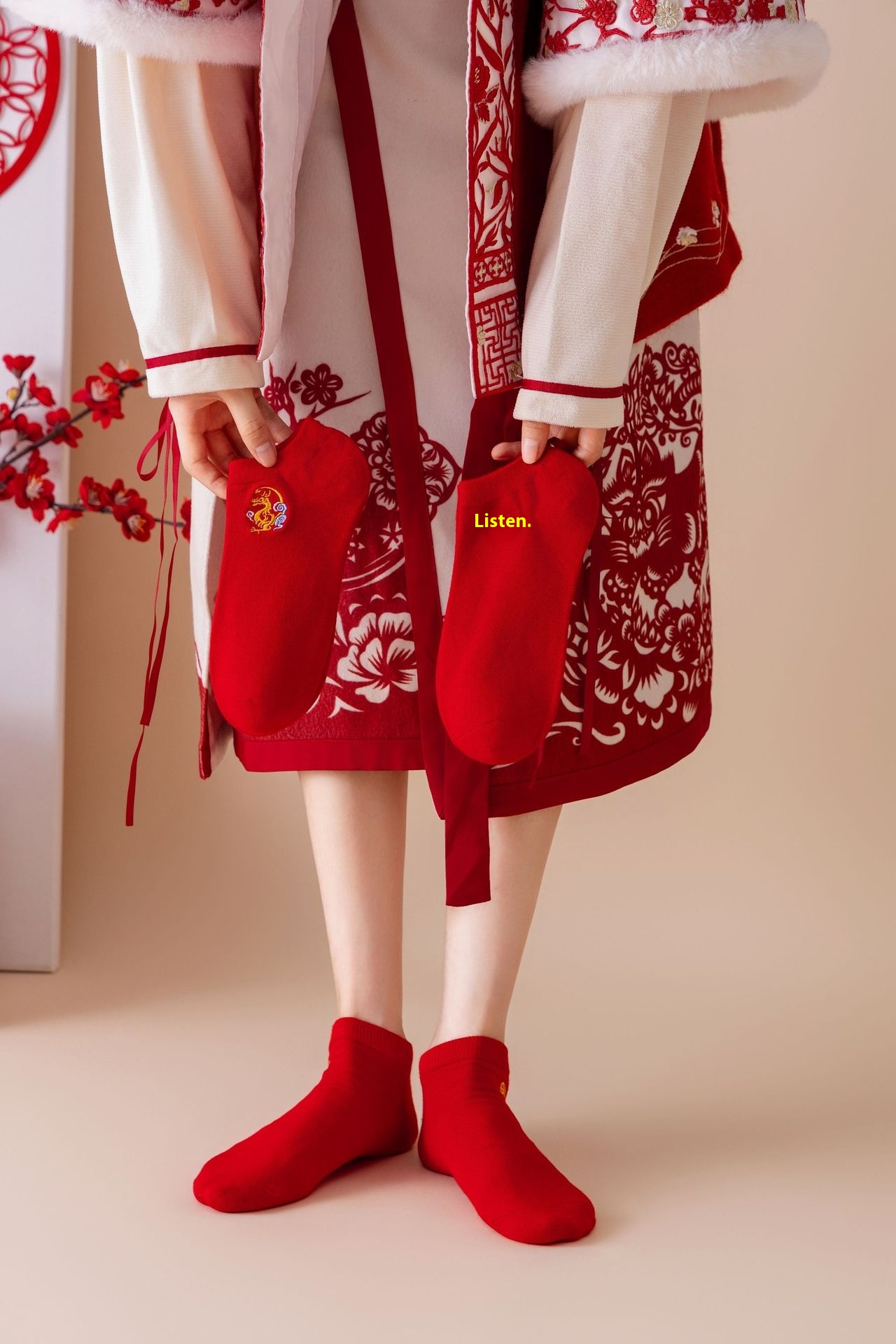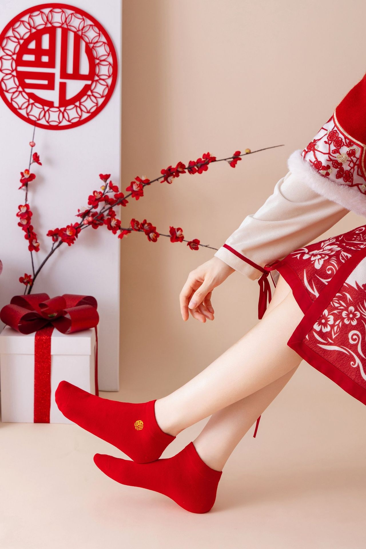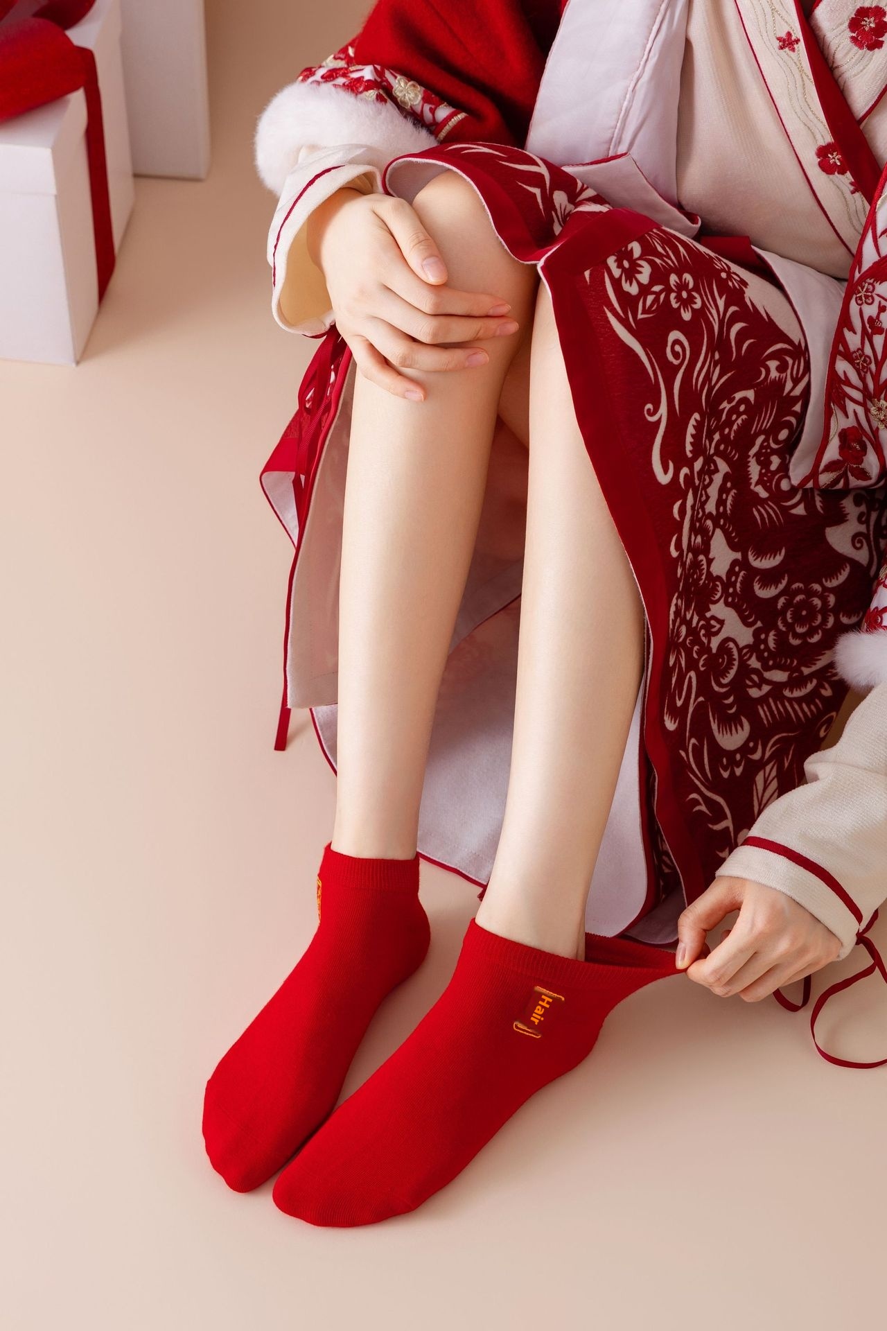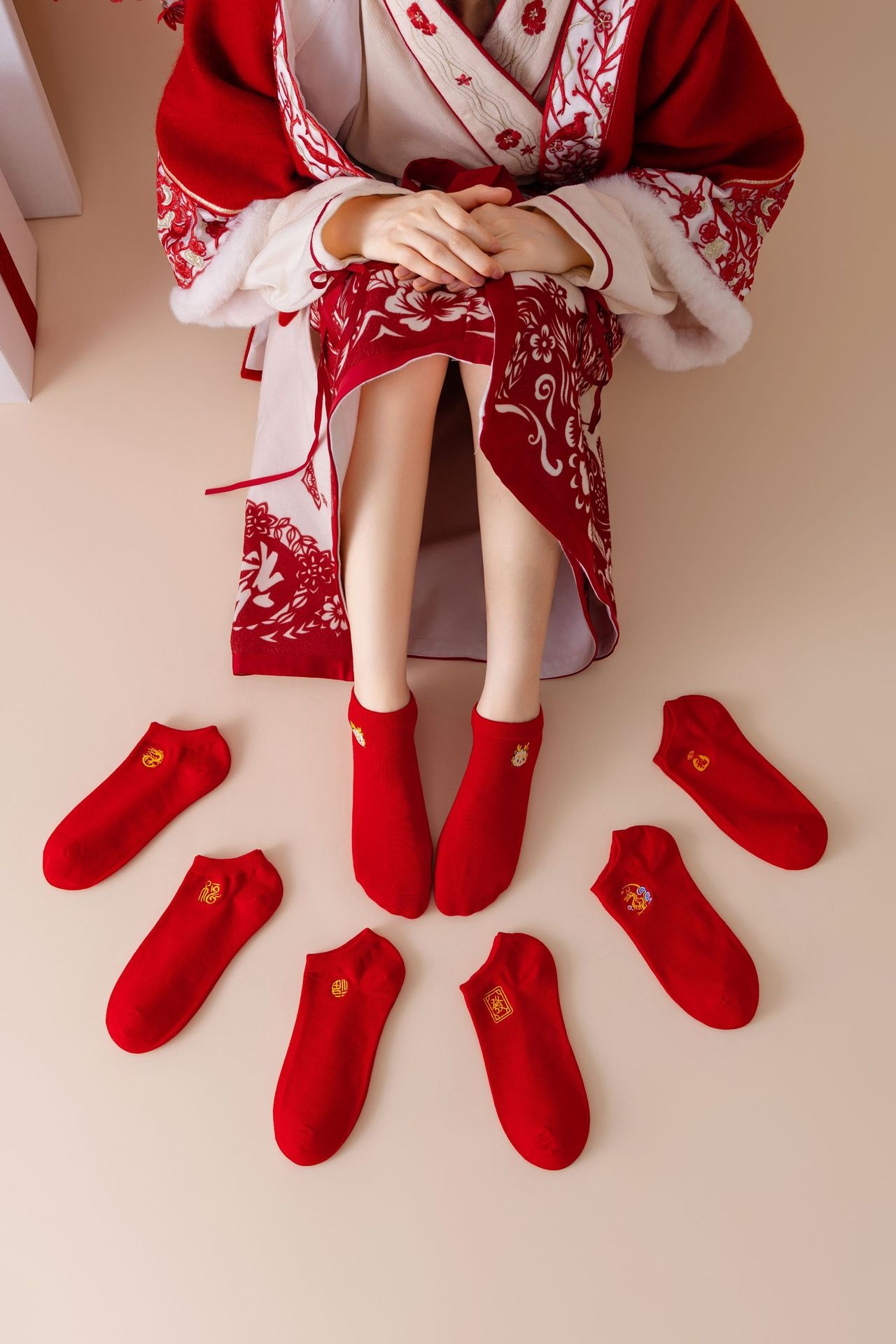 Red Socks, Animal Year Embroidery, Year Of The Dragon, Combed Cotton Socks For Men And Women, Big Red Wedding Year Boat Socks
