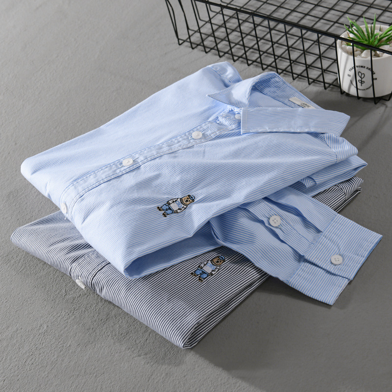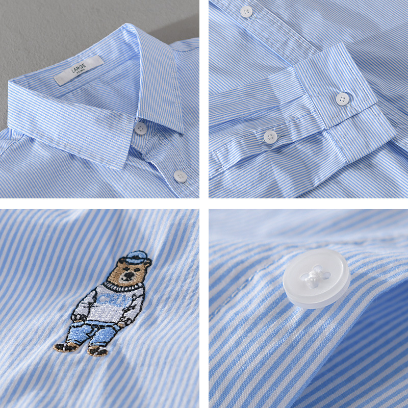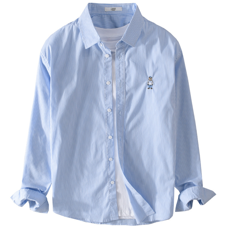 Vertical Striped Long Sleeve Shirt Men's Loose Casual Fashiony Top Men's Bear Embroidered Men's Shirt Jacket