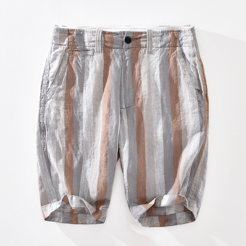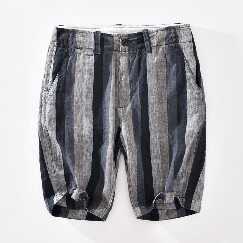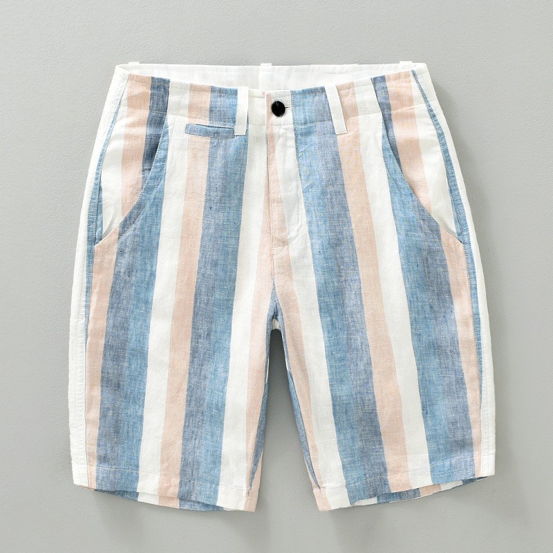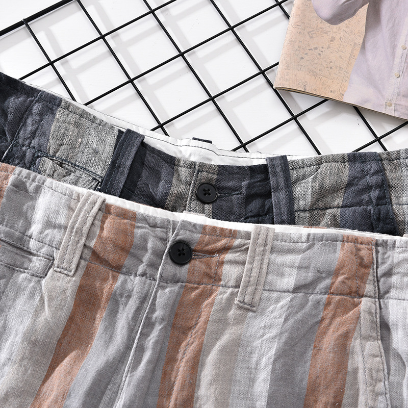 Summer Cotton And Linen Mid-shorts,Men's Five-point Pants,Western-style European Station,Hong Kong Style Striped Outer Wear Beach Pants