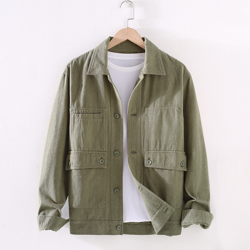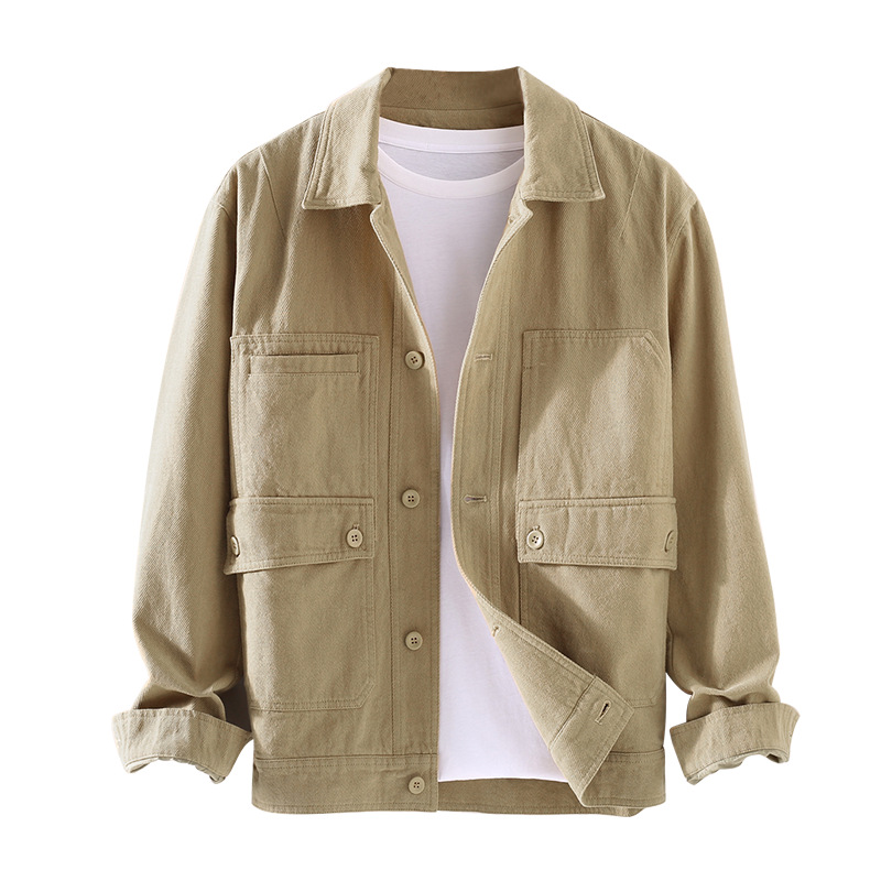 Autumn Work Shirt Men's Long-sleeved Youth Hong Kong Style Japanese Style Loose Outer Shirt Thick Cotton Casual Inch Shirty Jacket
