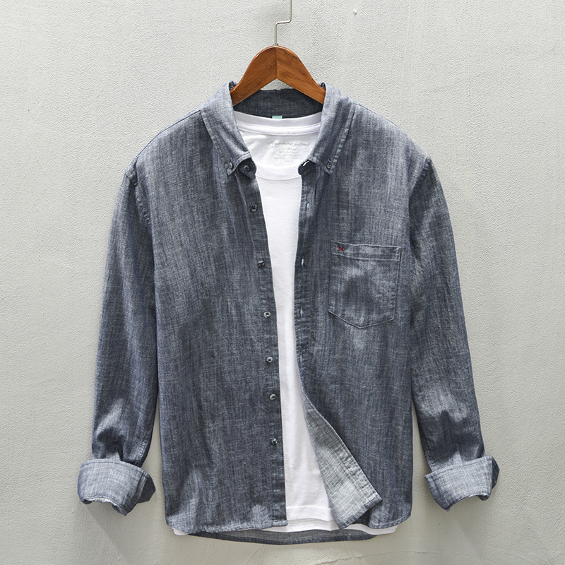 Z712 Men's Autumn Cotton Casual Long-sleeved Shirt Drop Shipping