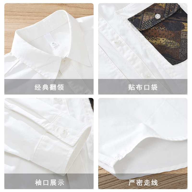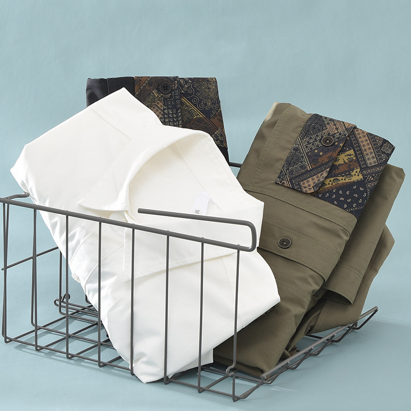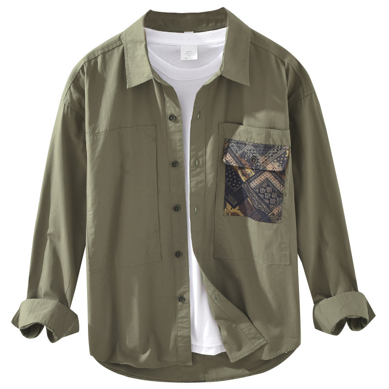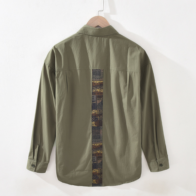 M955 Japanesey Work Shirt Men's Long-sleeved Loose Top Color-blocked Square Collar Pure Cotton Shirt Drop Shipping