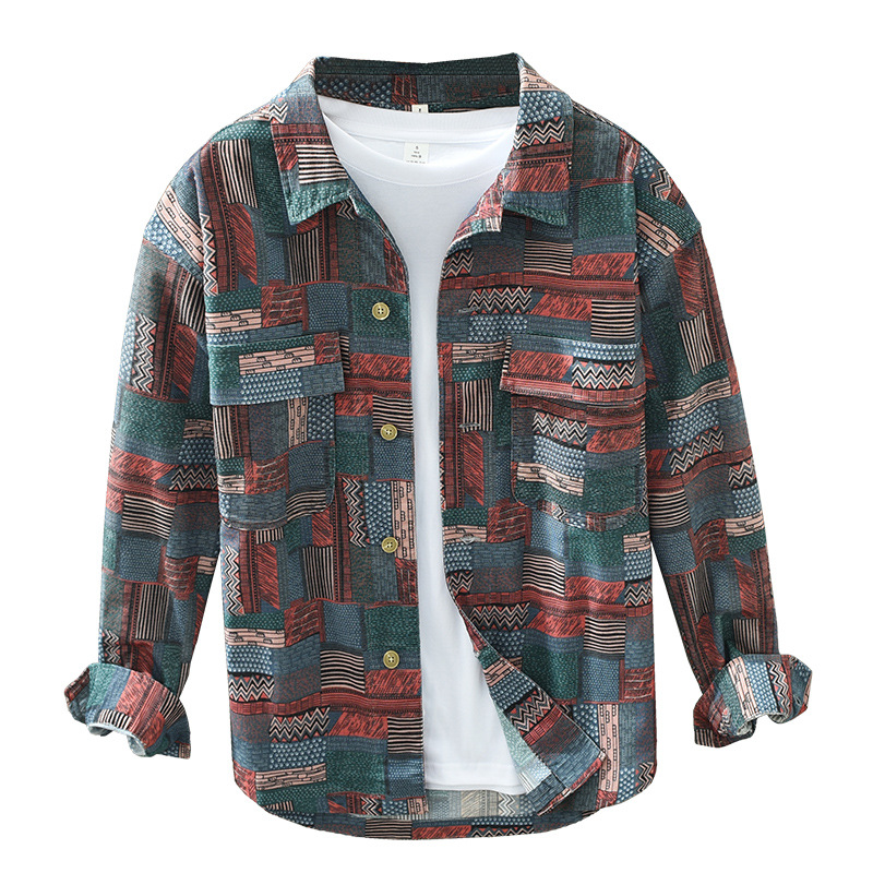 1306 Long-sleeved Shirt For Men Japanese Style Loose Full Print Design Fashion Shirt Casual Versatile One Piece Drop Shipping