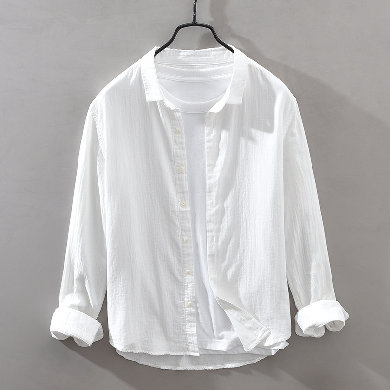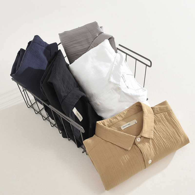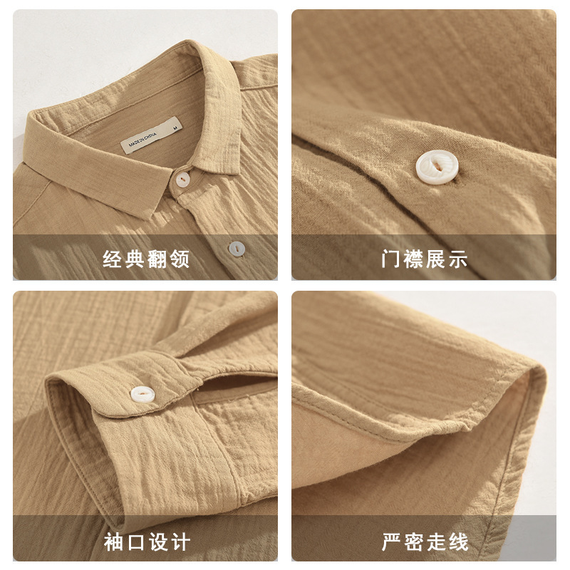 1908 Japanese Casual Double-layer Cotton Yarn Long-sleeved Shirt Autumn Men's Square Collar Pure Cotton Soft Shirt Drop Shipping
