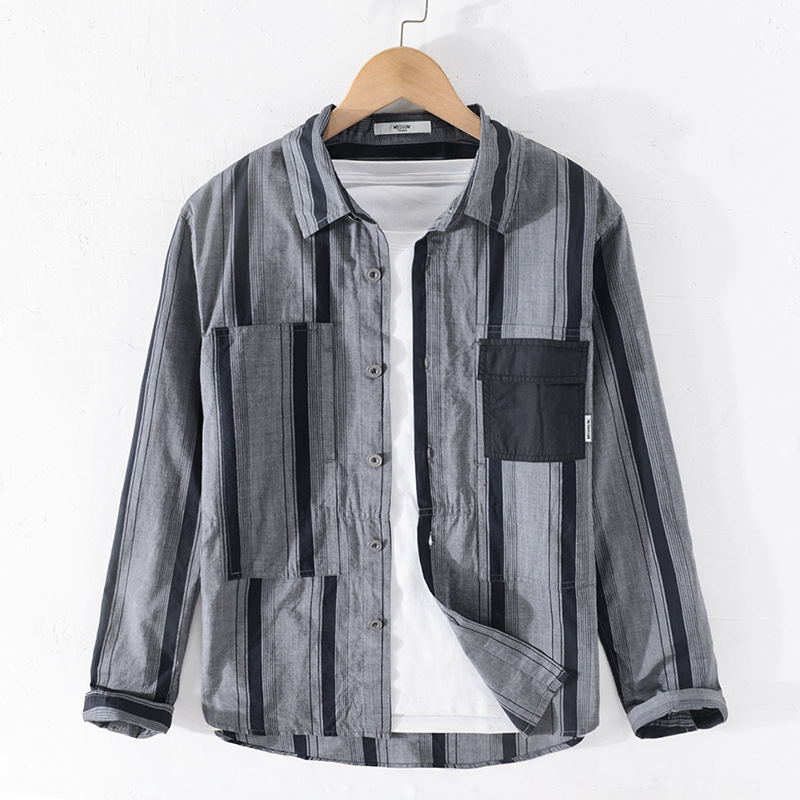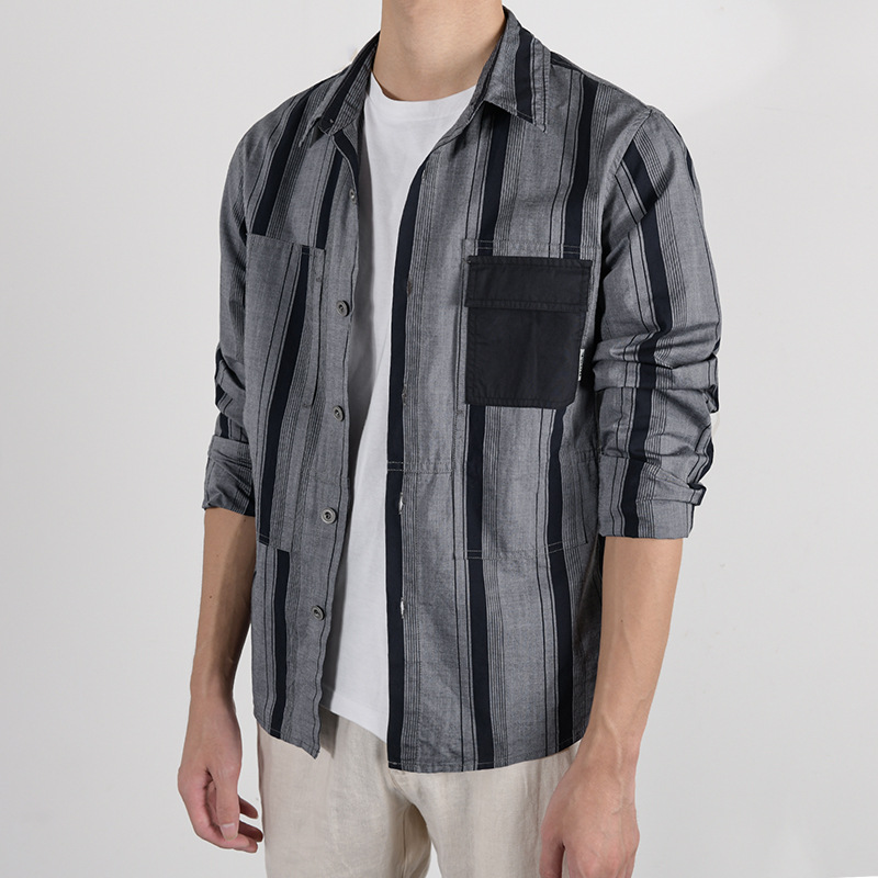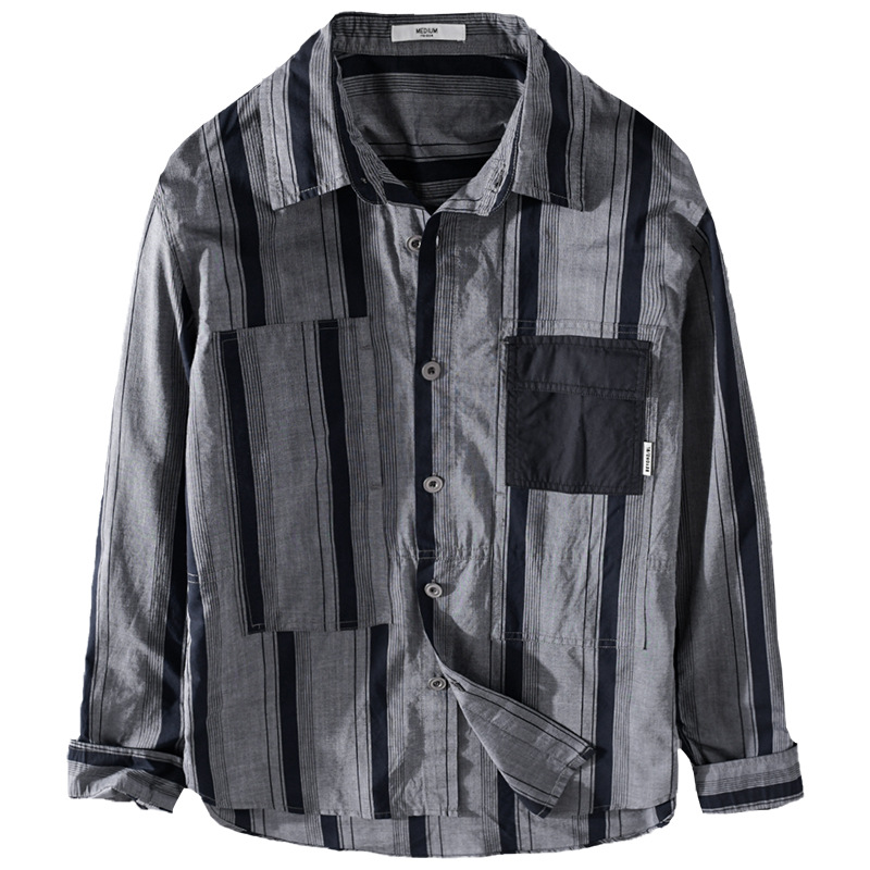 Autumn Shirt Men's Korean Style Long-sleeved Shirt Men's Loose Striped Jackety One-piece Drop Shipping