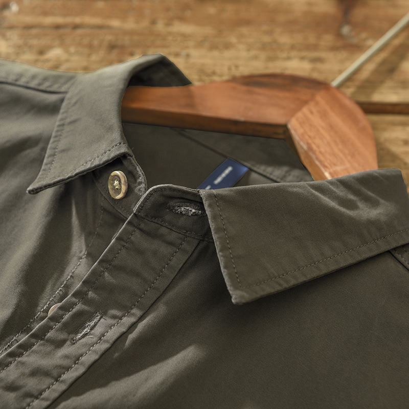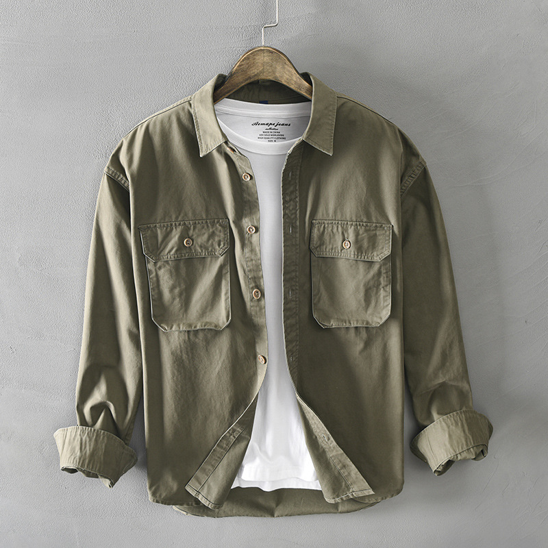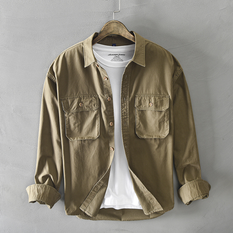 Solid Color Simple Pocket Shirt Men's Personality Japanese Retro Work Shirt Korean Styley Casual Jackety Generation